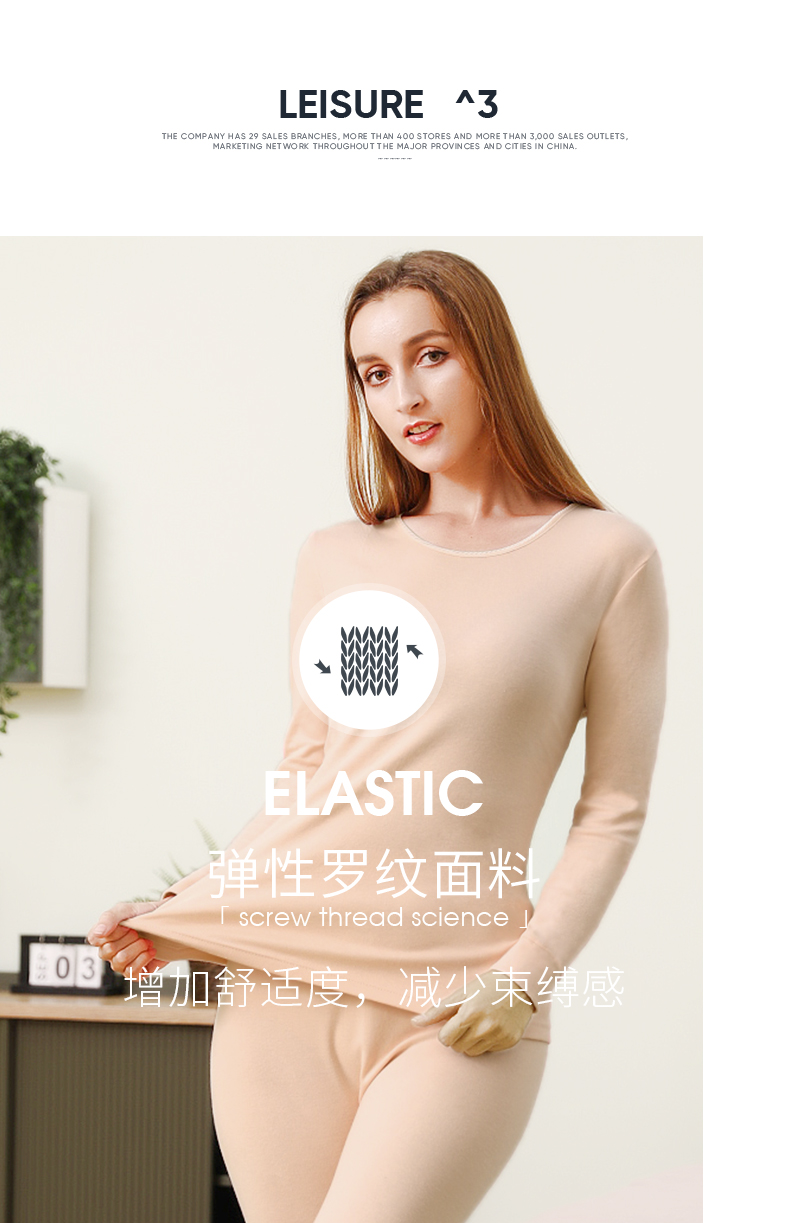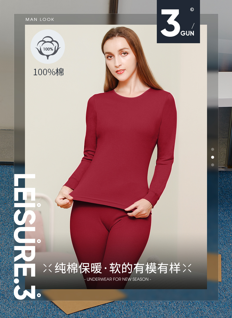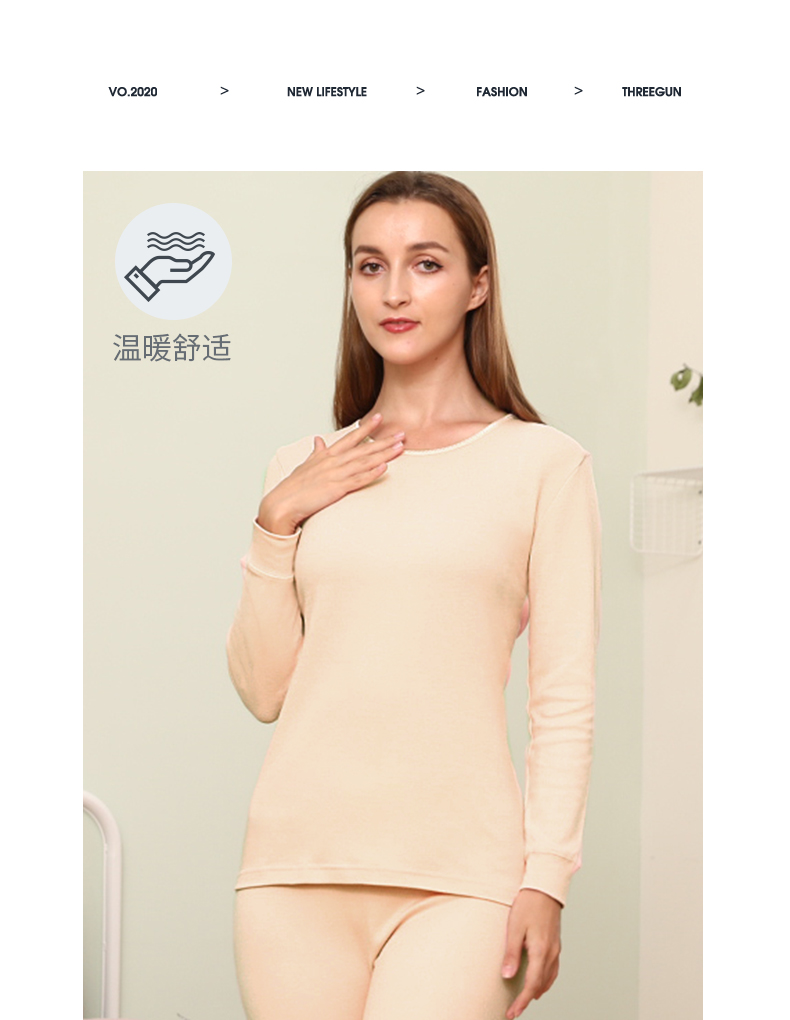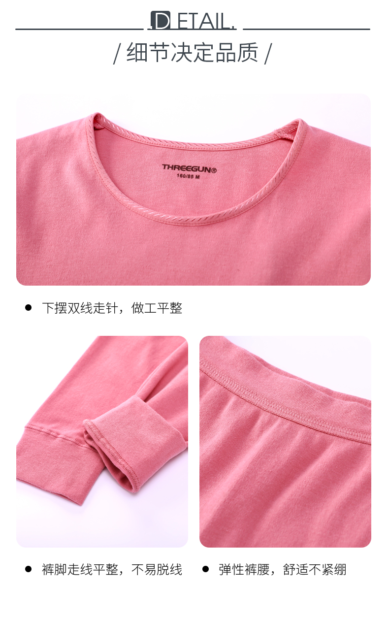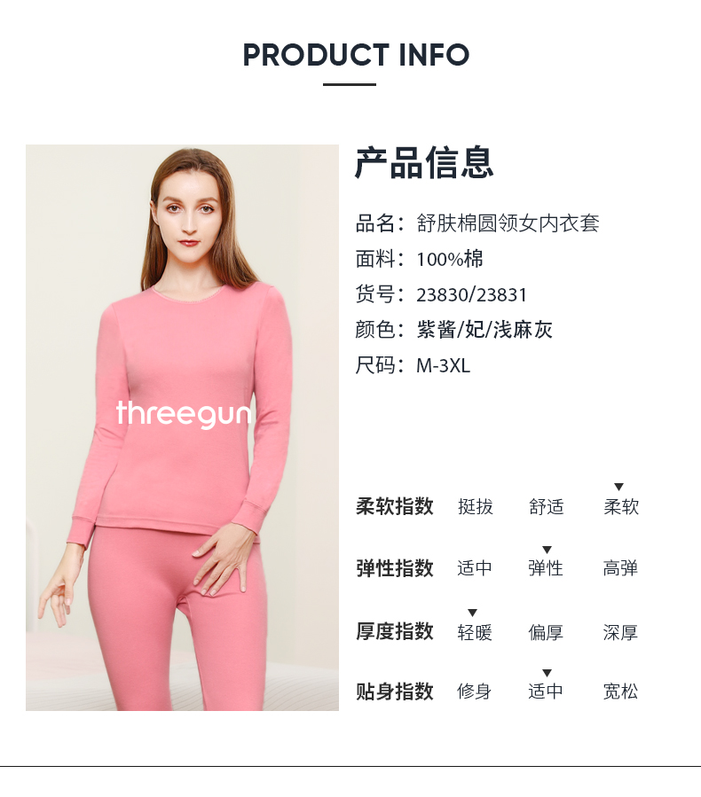 Threegun三枪 【新疆舒肤棉】圆领女士保暖内衣套装-23830D011