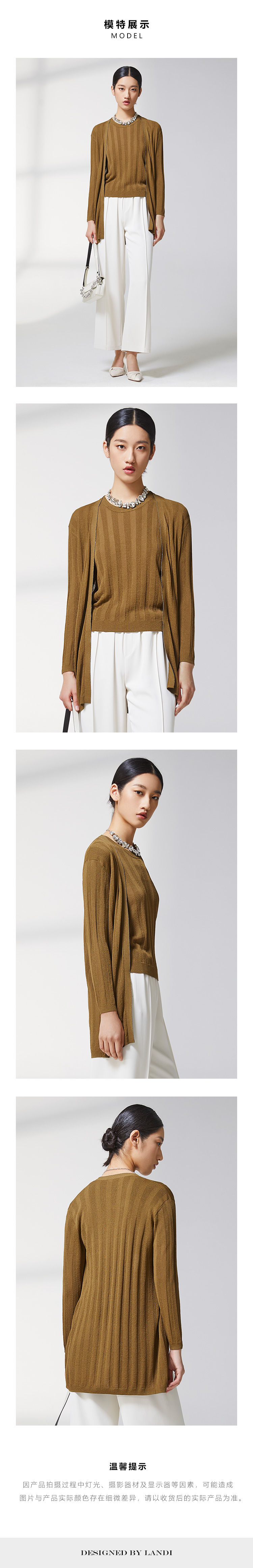 蓝地抽条珠链绣长款开衫BLWCZ085000