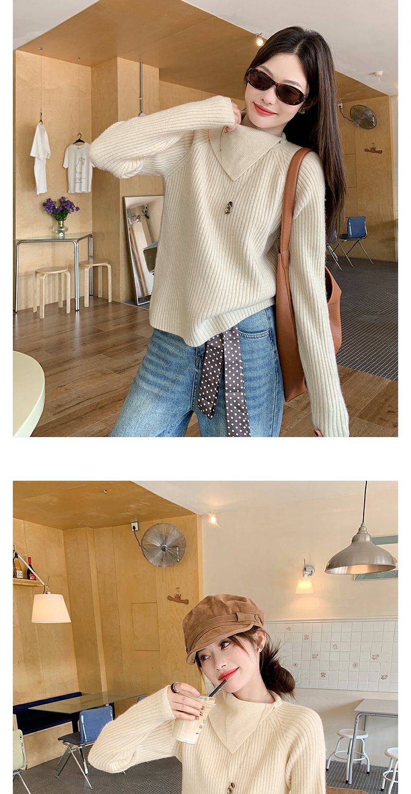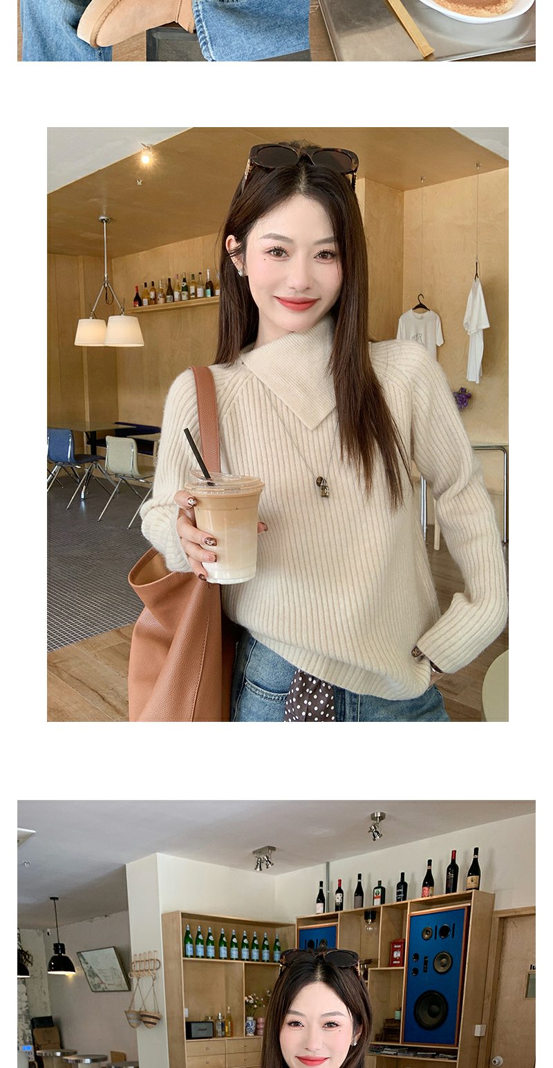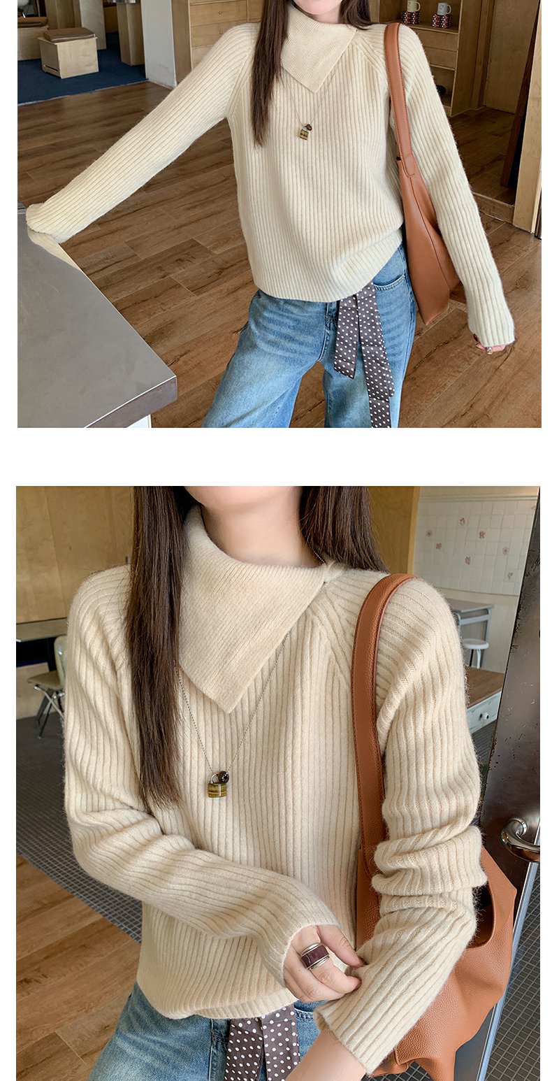 【149元任选2件】现货!杏色不规则大翻领毛衣