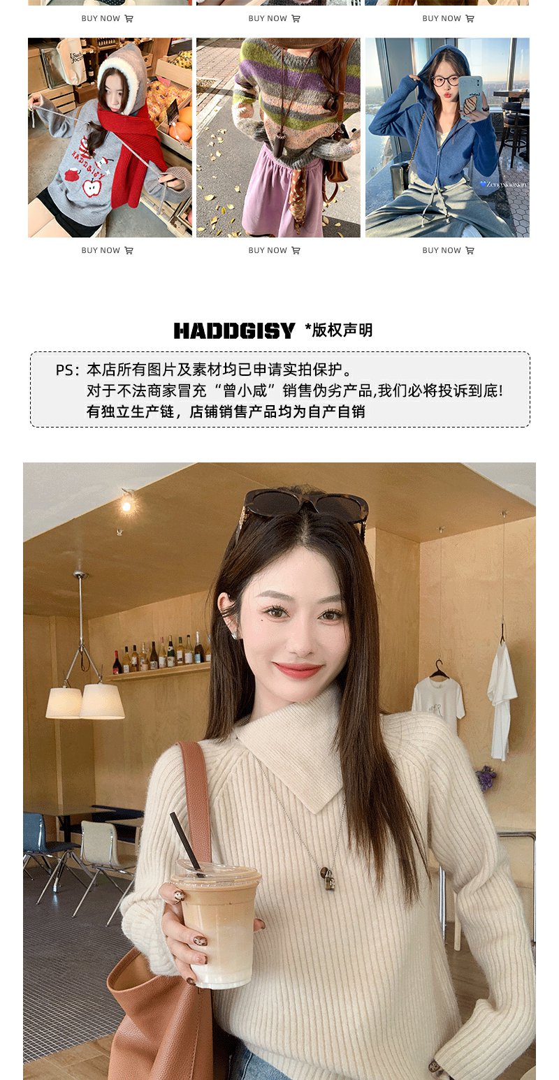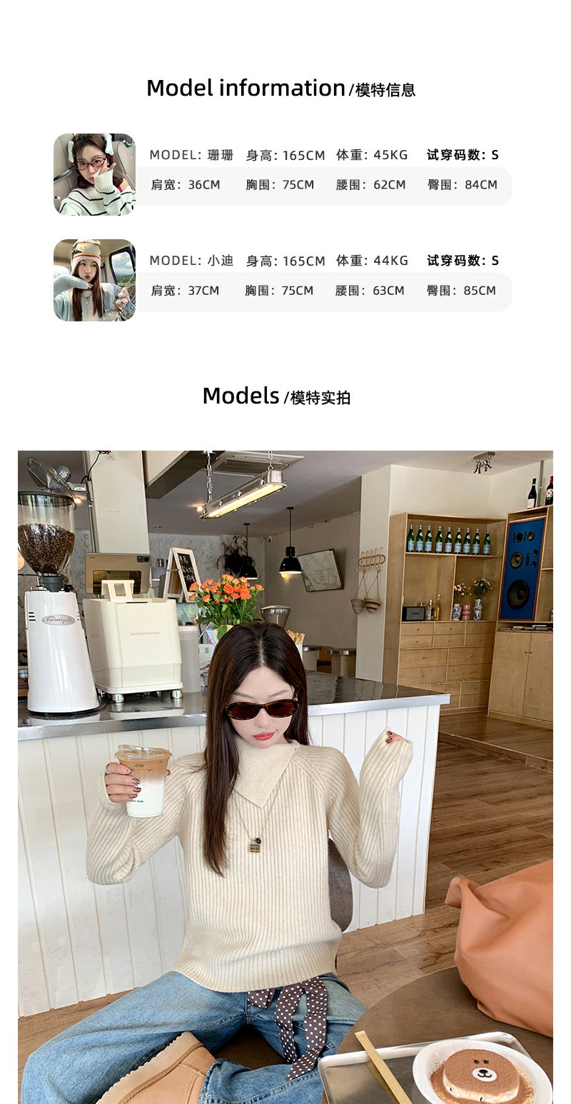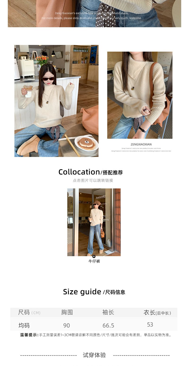 【149元任选2件】现货!杏色不规则大翻领毛衣