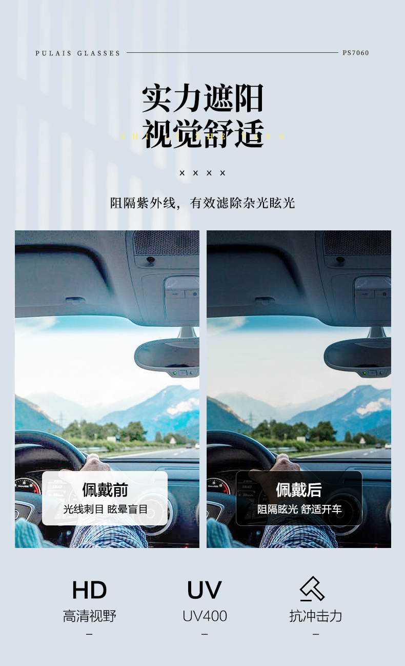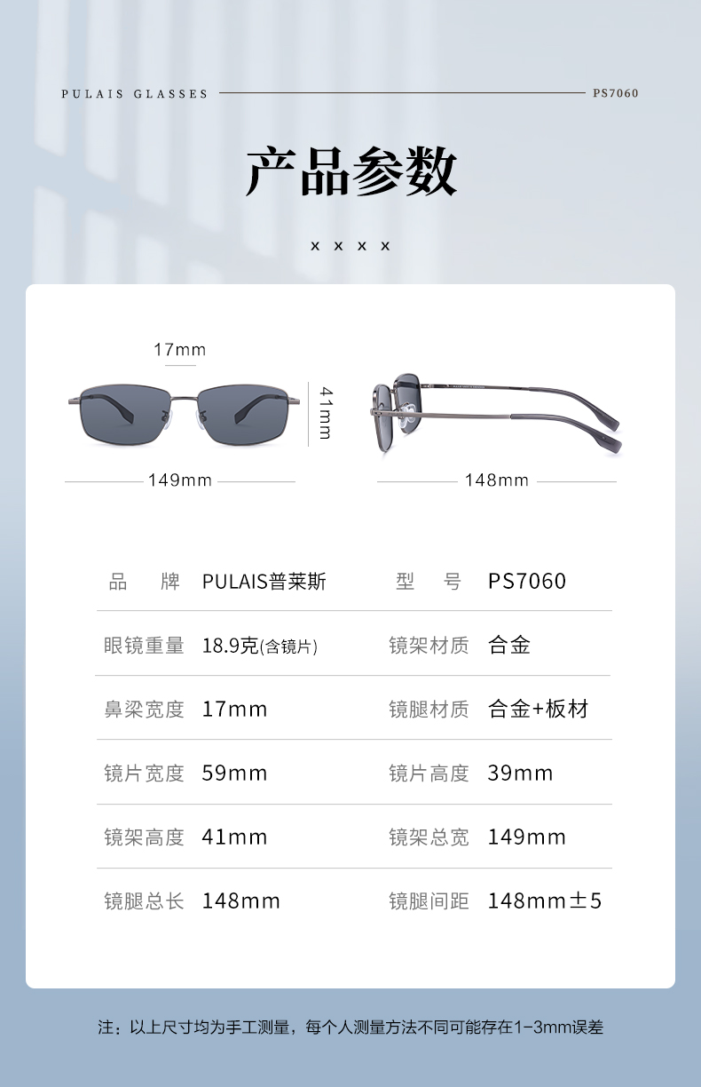 普莱斯太阳镜PS7060 偏光太阳镜 型男造型焦点 合金+板材 三色可选