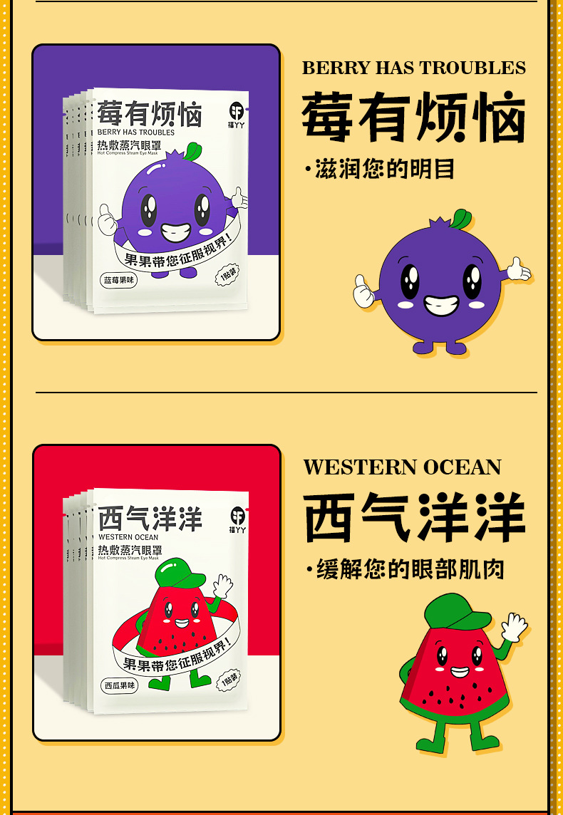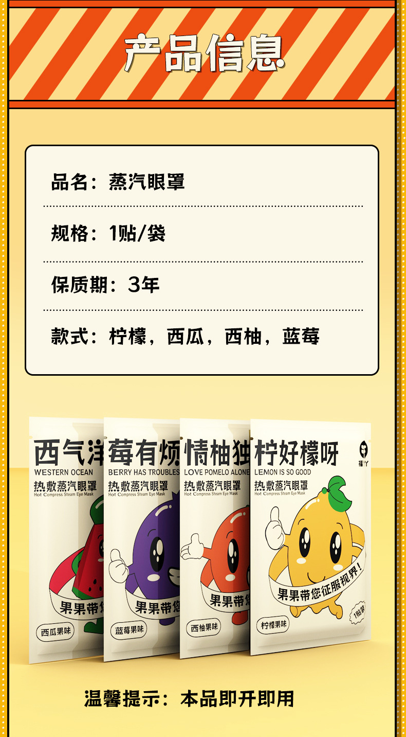 「19.9到手20包」福丫丫水果味蒸汽眼罩 缓解疲劳热敷发热眼罩居家日用一次性蒸汽眼罩睡眠