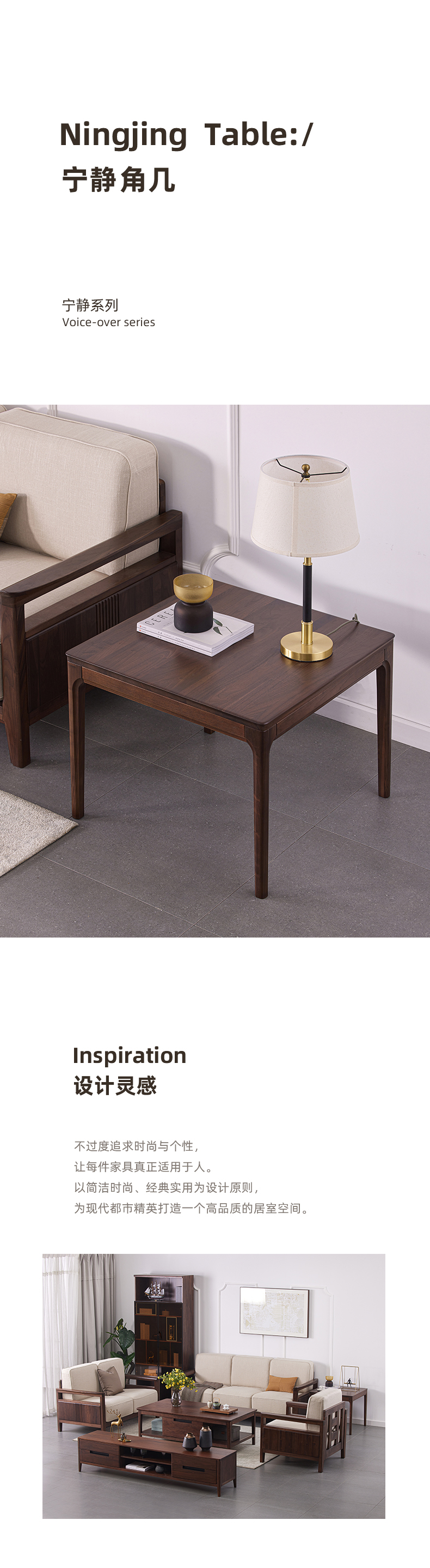 【现代实木风-NJT2402C03角几】现代实木/现代简约/客厅/北美黑胡桃/实木角几
