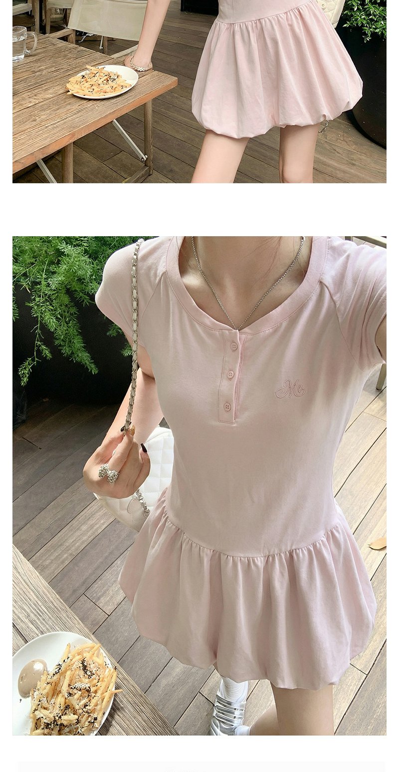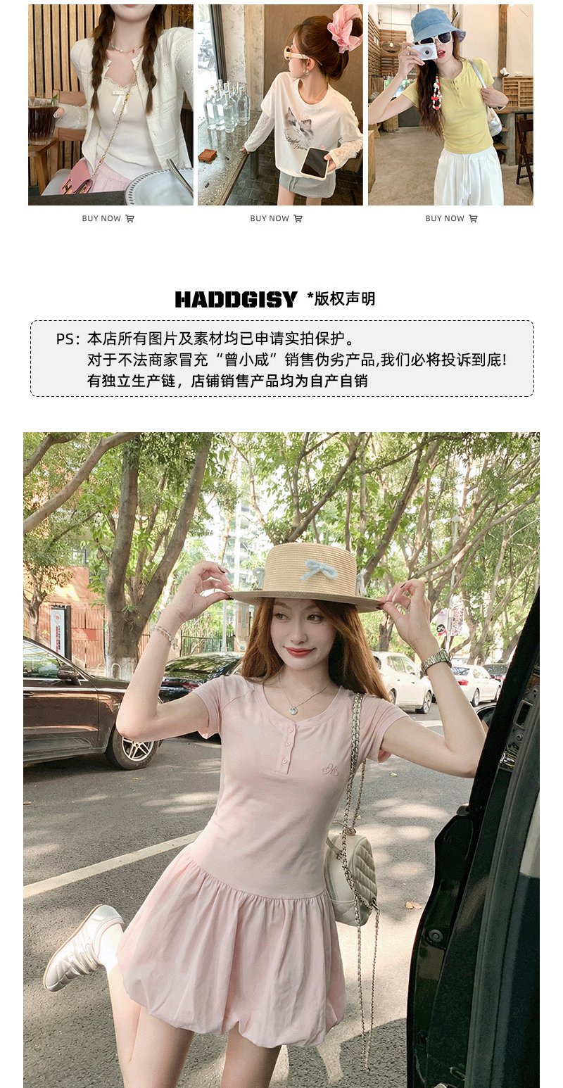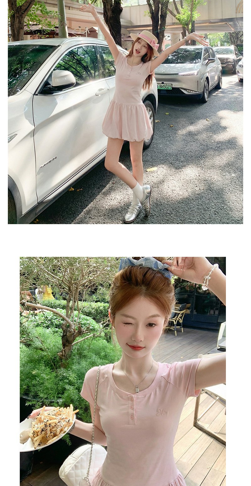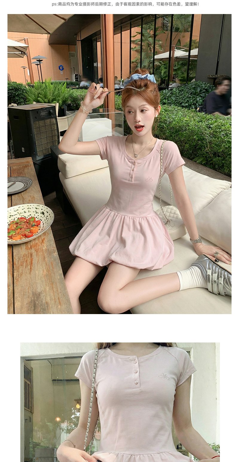 <曾小咸推荐> 韩系刺绣u领短袖连衣裙花苞裙【预售款,预计3-15天!!】