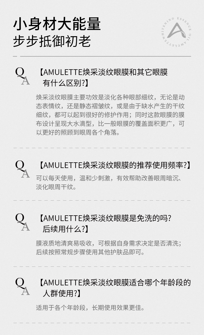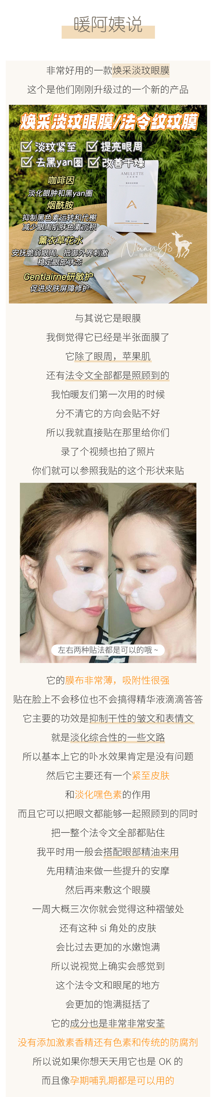 【淡化动/静态纹 法令纹 提亮眼周 去黑yan 深度滋养】焕采淡玟眼膜/法令玟膜 10ml*8对 AMULETTE yi镁品牌