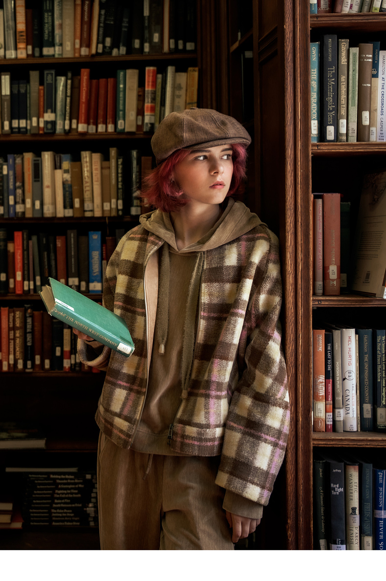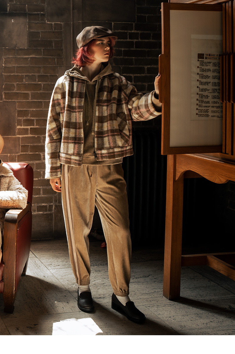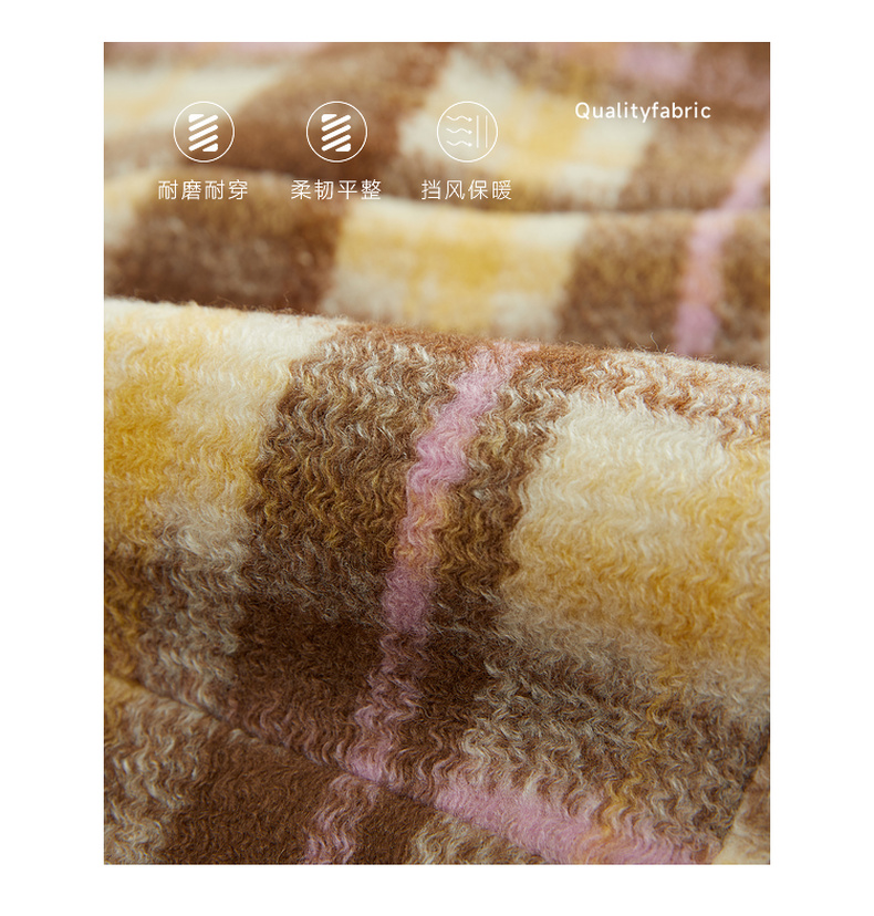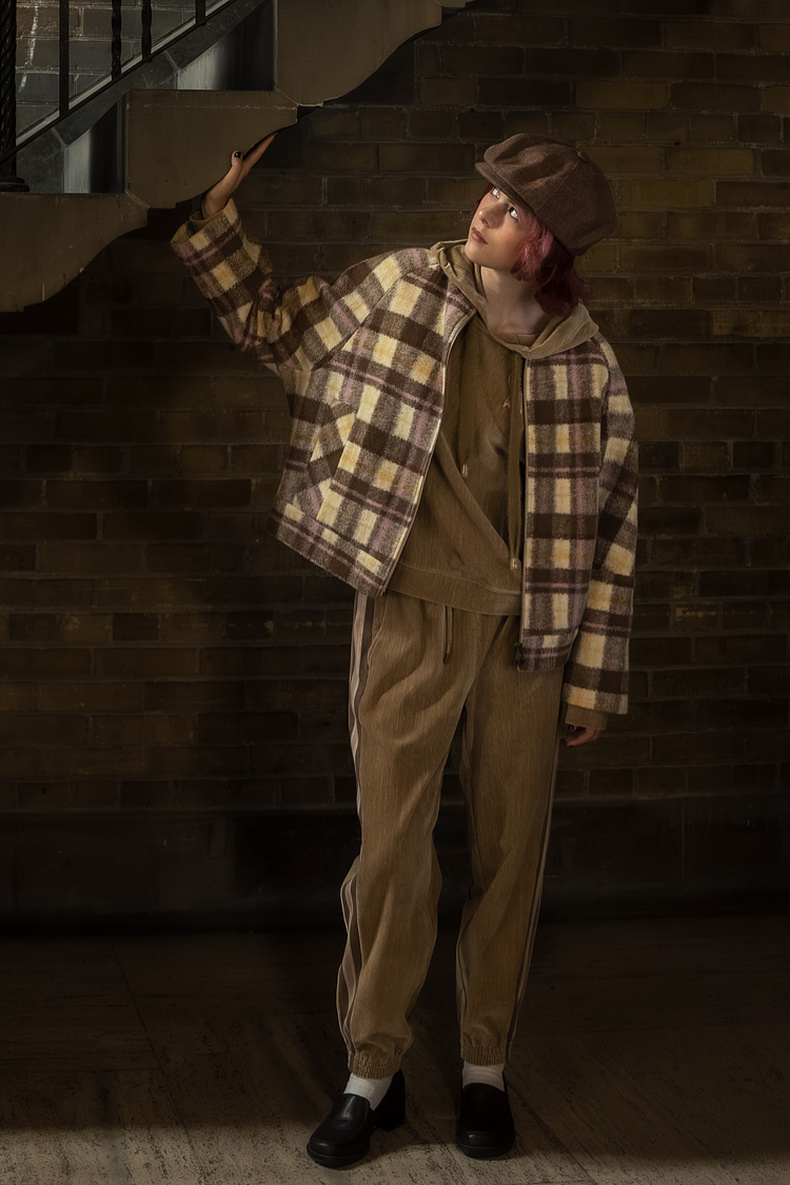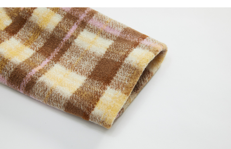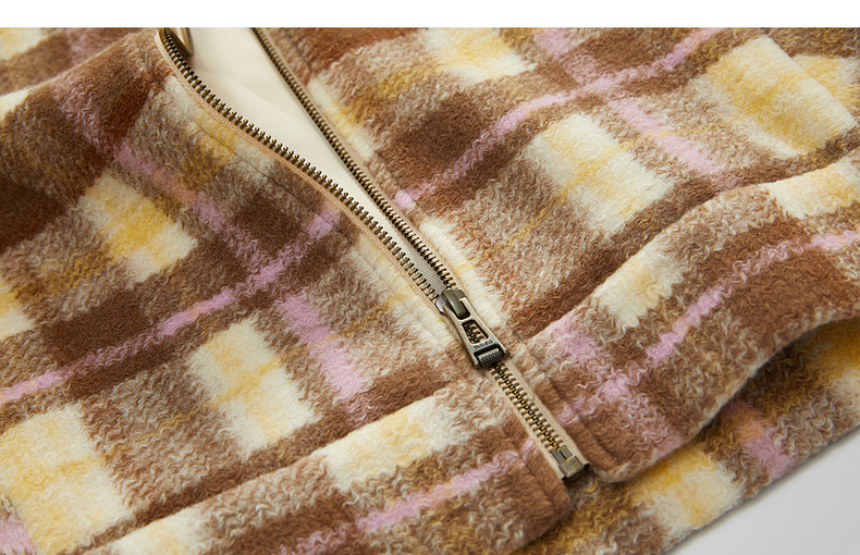谜底粗花呢外套女2023冬季新品复古格子棒球领呢子大衣234MW1460