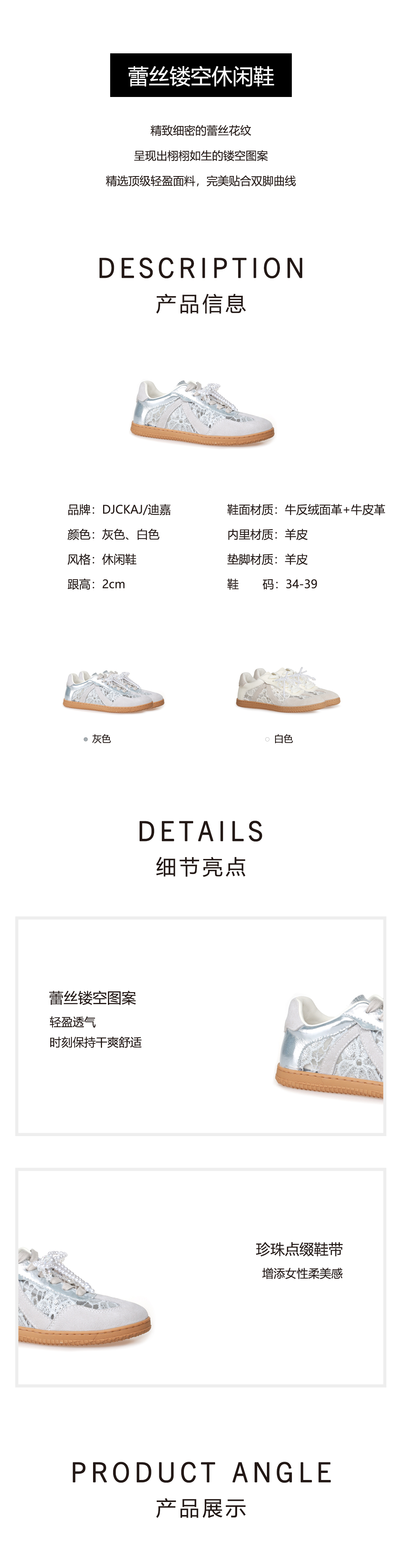 豪麟名鞋奥莱迪嘉女鞋时尚休闲鞋牛反绒面革+牛皮革DJHJA51WX027灰色 原价1660元