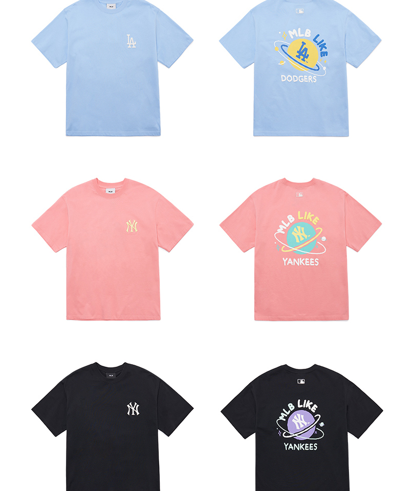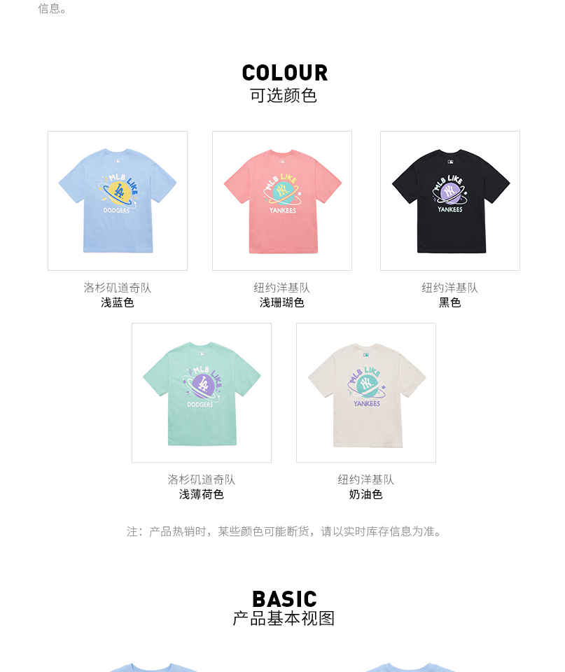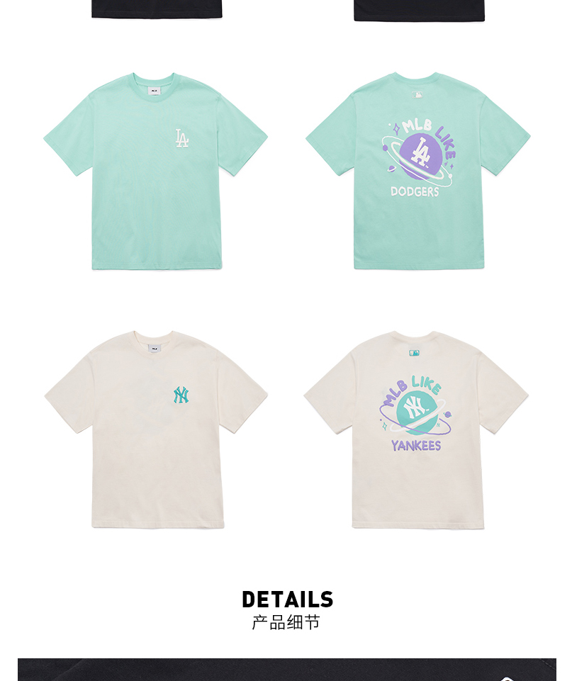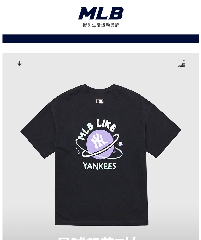 MLB男女情侣T恤星球印花短袖运动休闲宽松22年春夏新款3ATSE1223