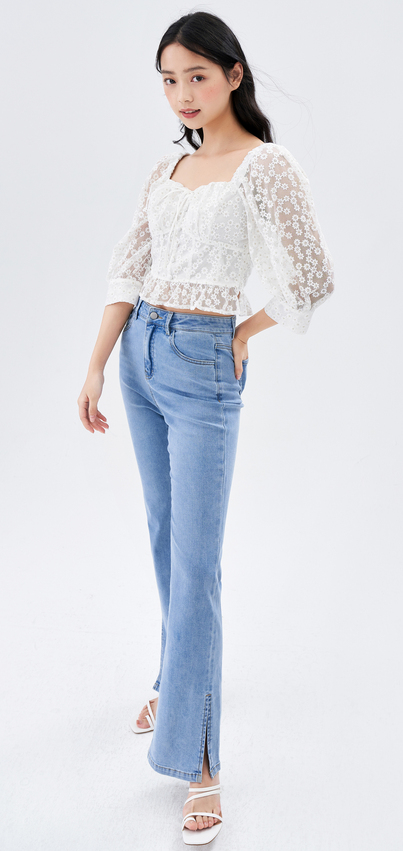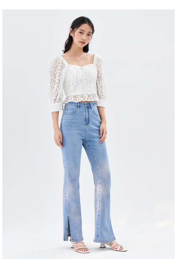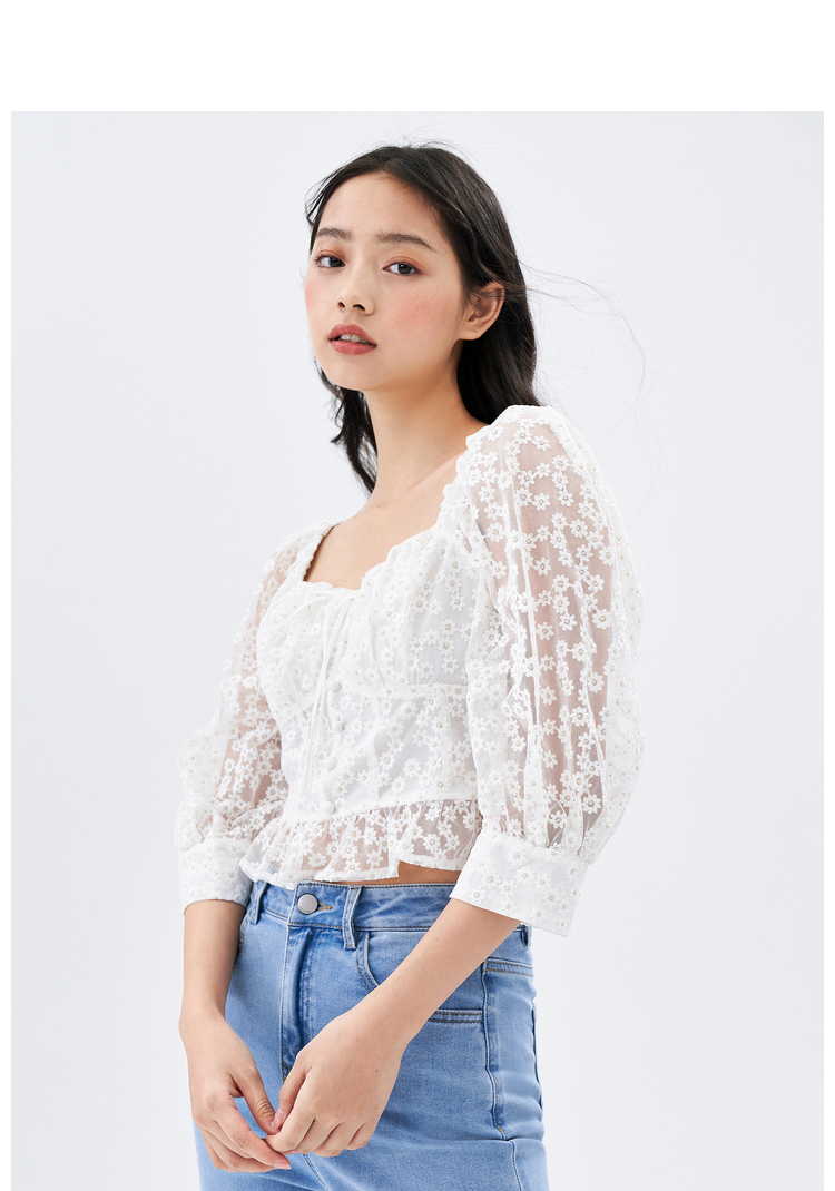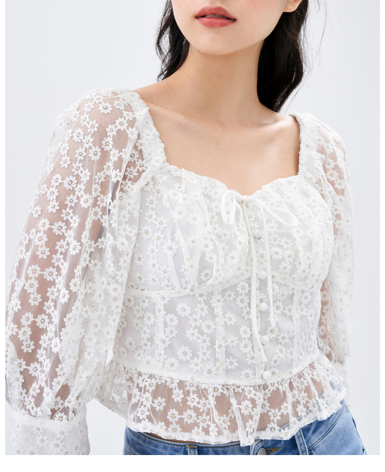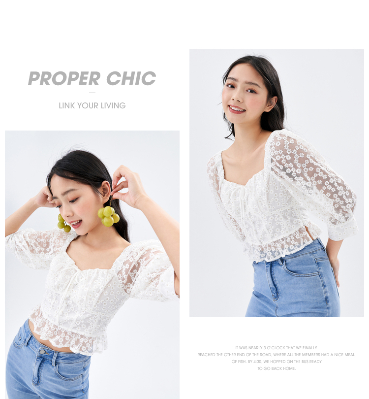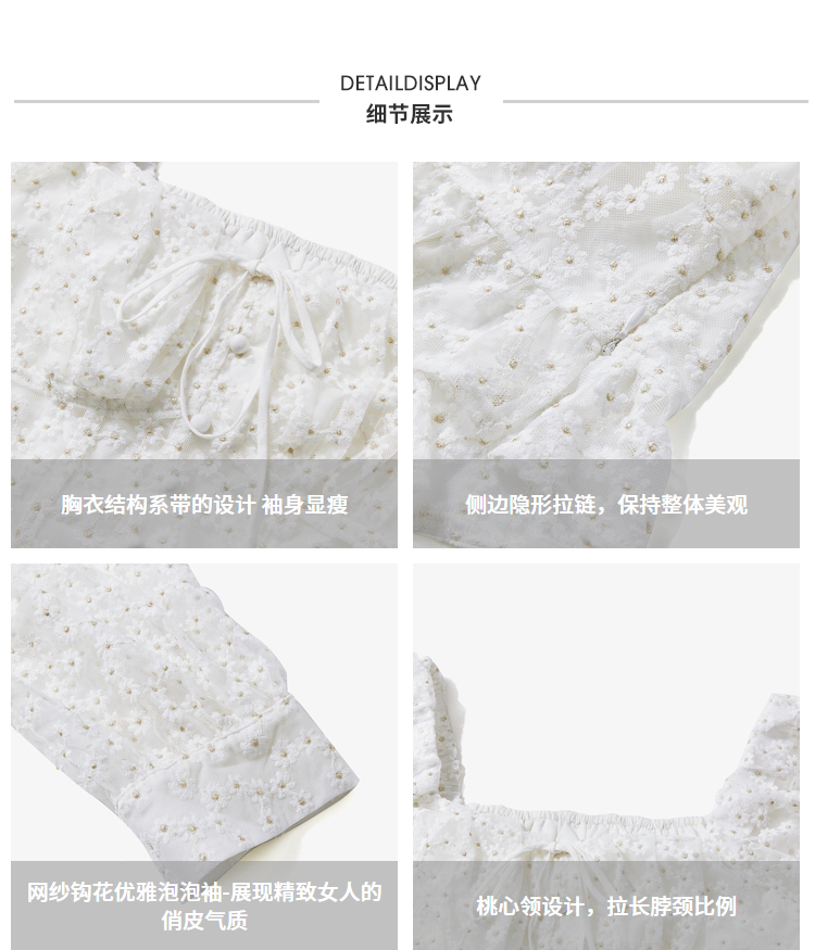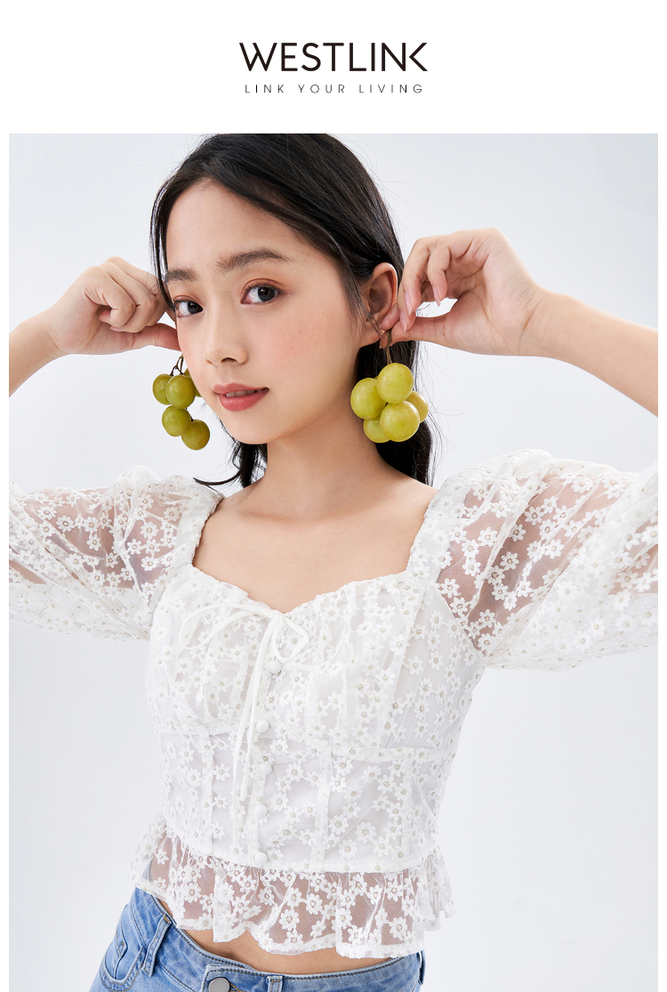 西遇白色女设计感小众法式短袖方领赫本风泡泡袖上衣女夏10910629