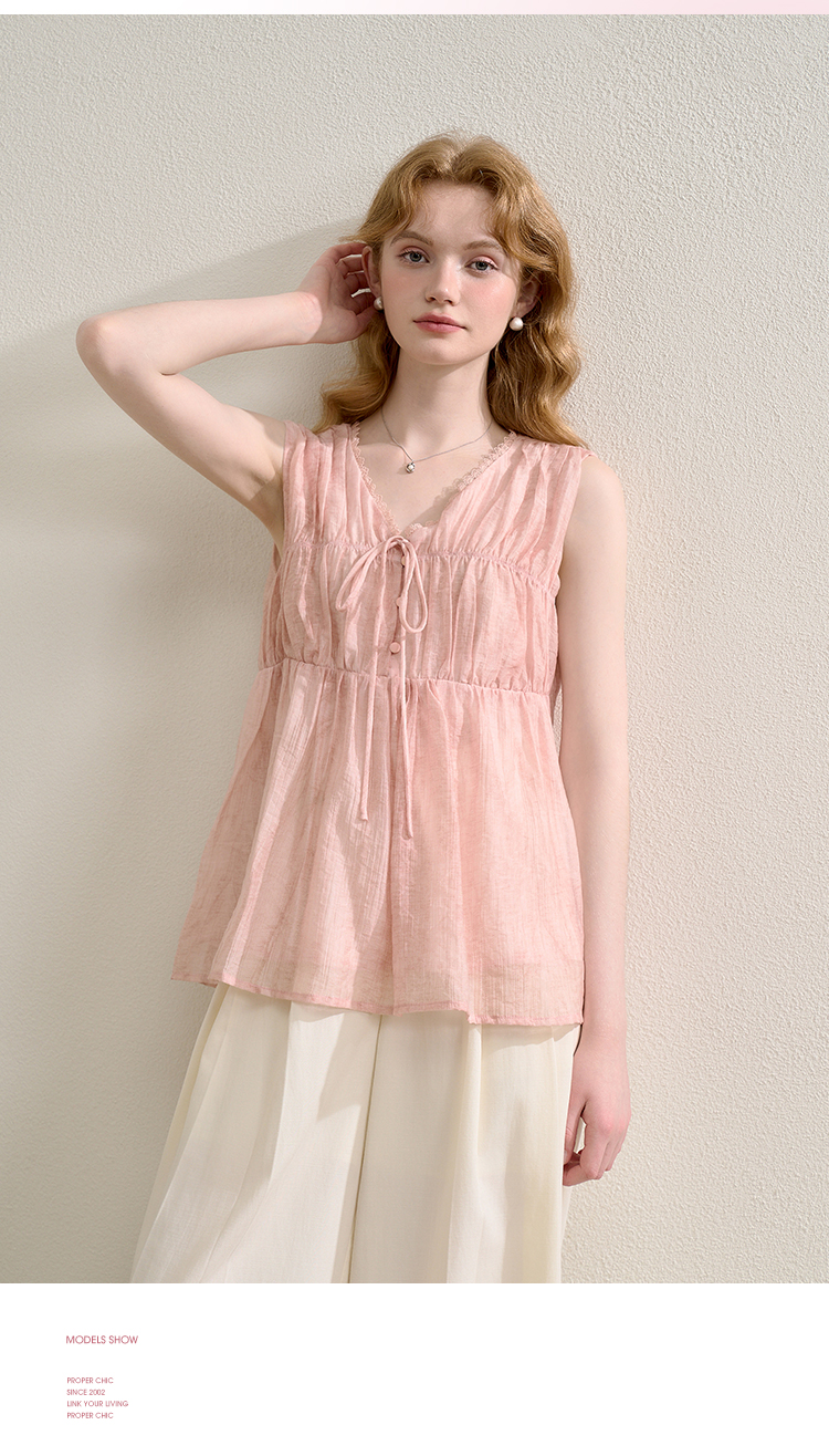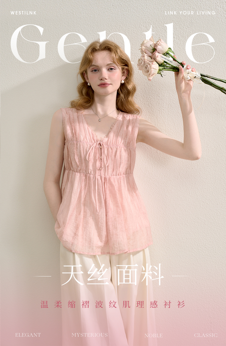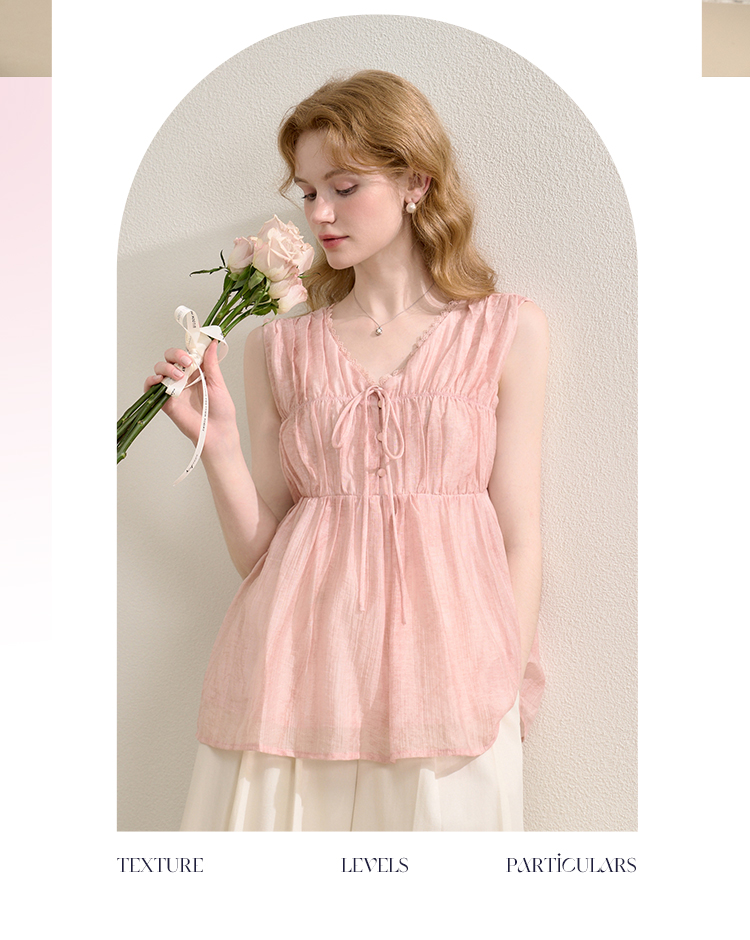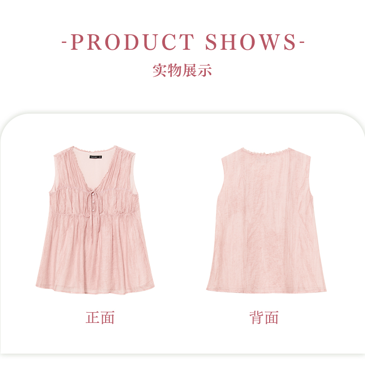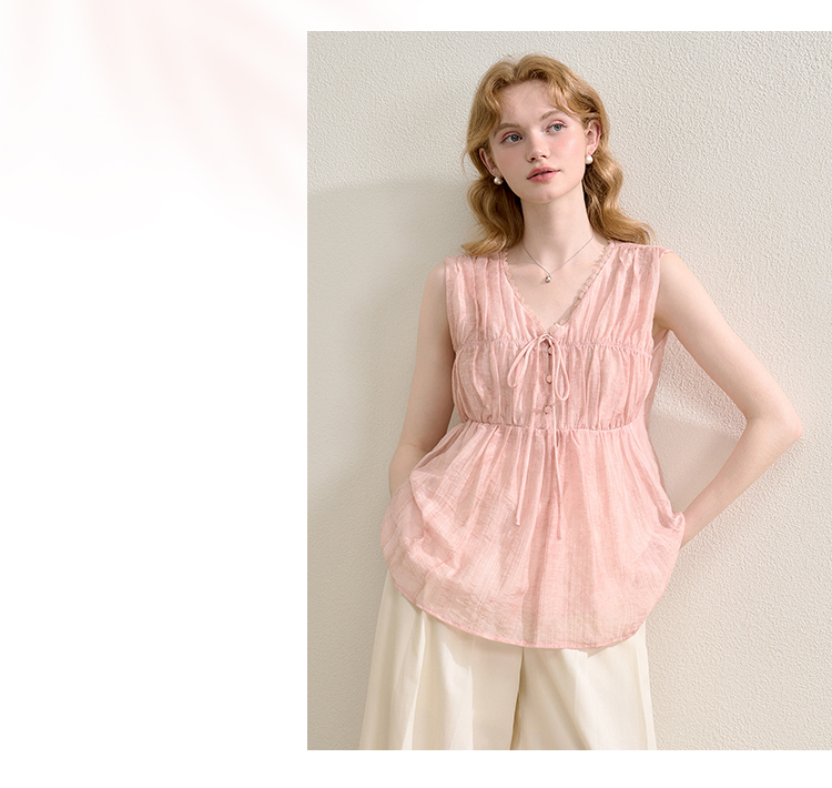 【天丝】温柔缩褶波纹肌理感衬衫女夏季娃娃款V领衬衣V0051045