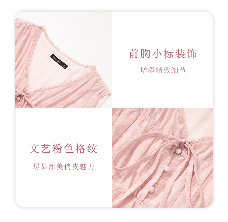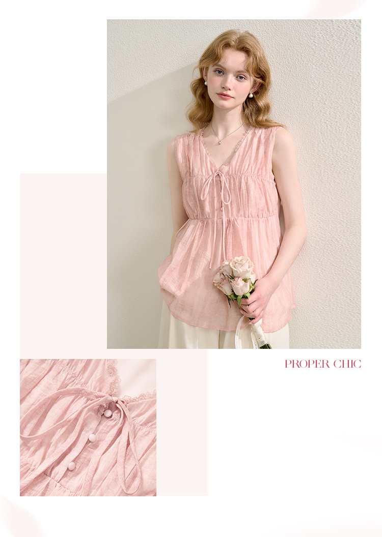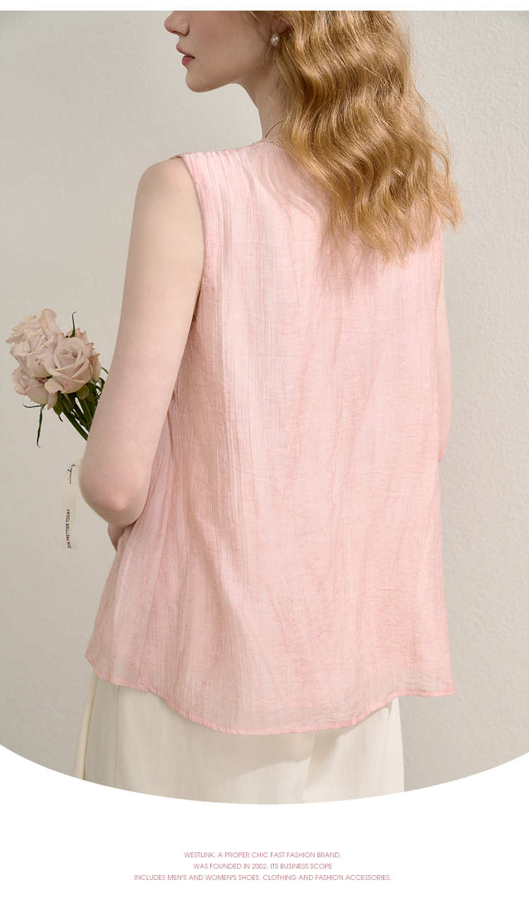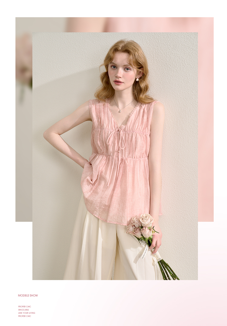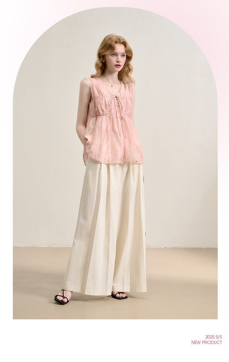 【天丝】温柔缩褶波纹肌理感衬衫女夏季娃娃款V领衬衣V0051045
