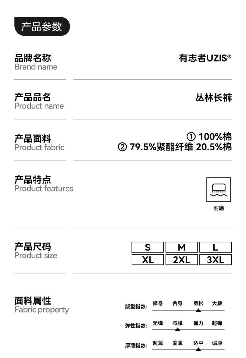 有志者UZIS运动长裤秋冬迷彩直筒型秋冬款宽松加厚篮球训练裤丛林