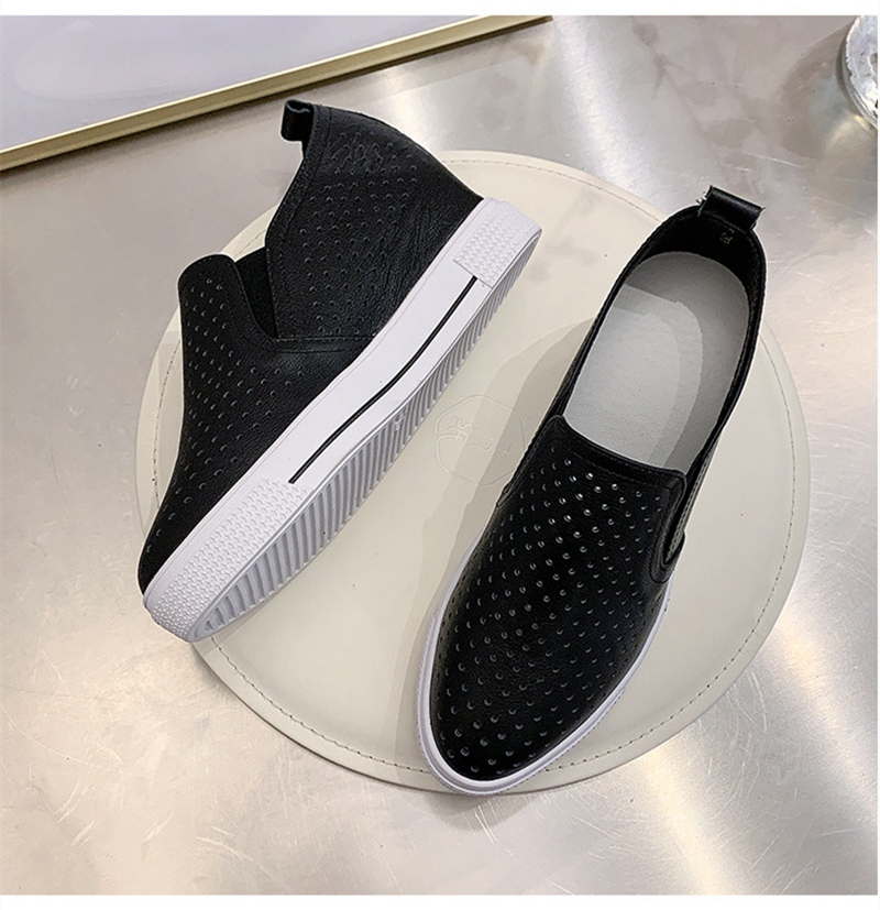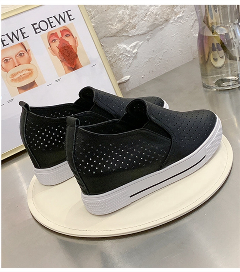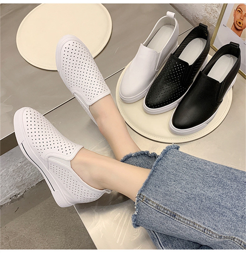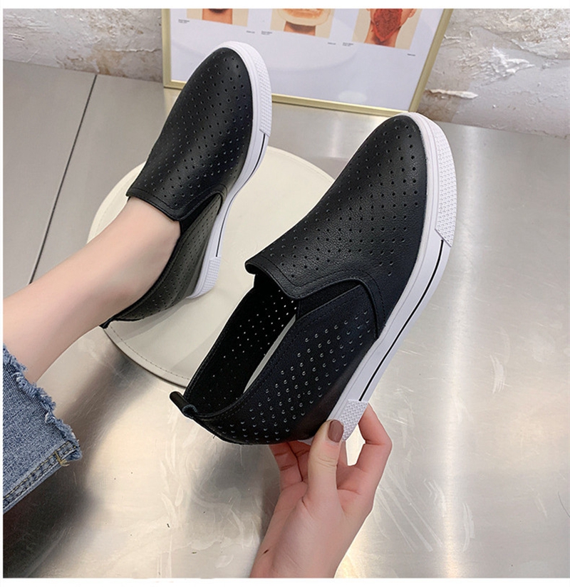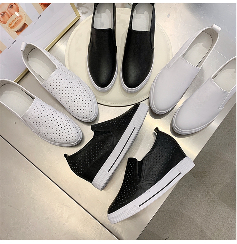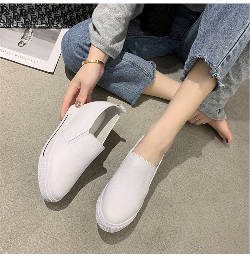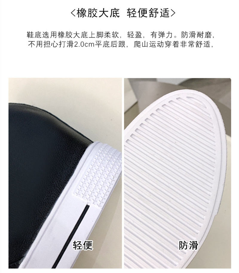 头层牛皮圆头低帮坡跟内增高厚底小白鞋