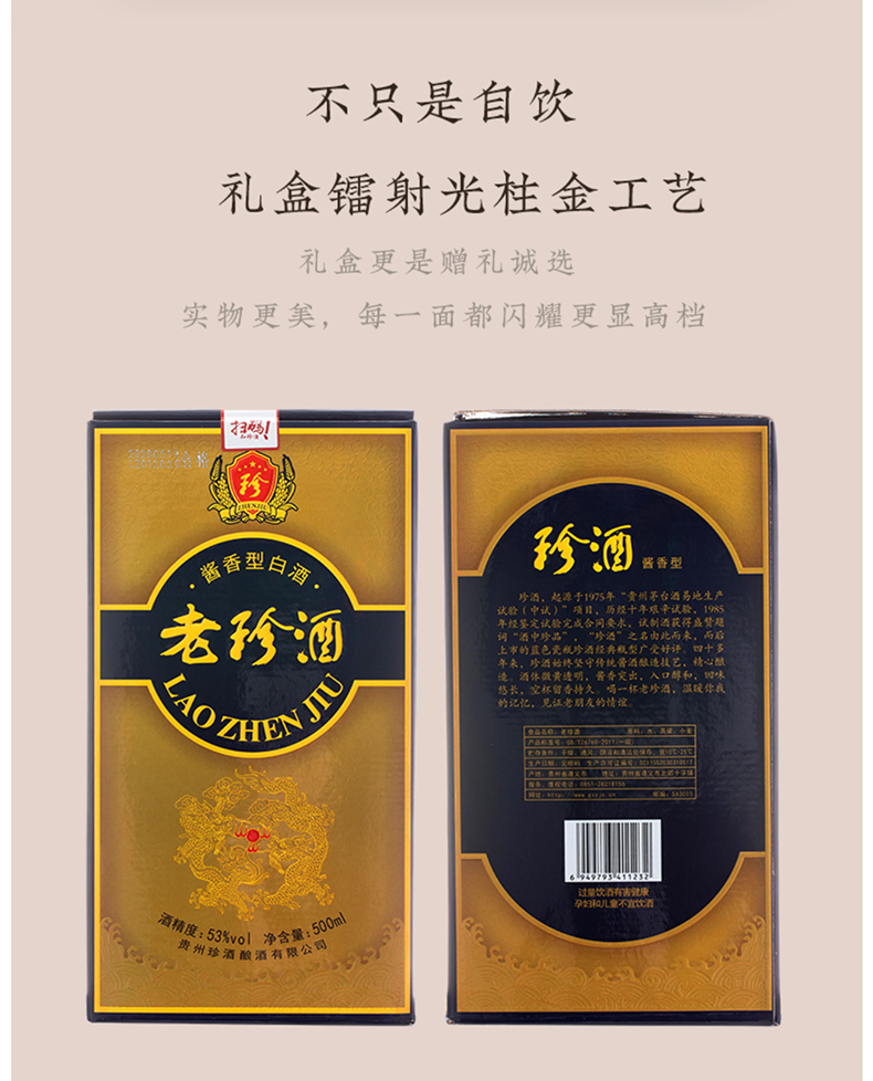 贵州老珍酒 53度酱香型纯粮白酒 整箱6瓶*500ml包邮