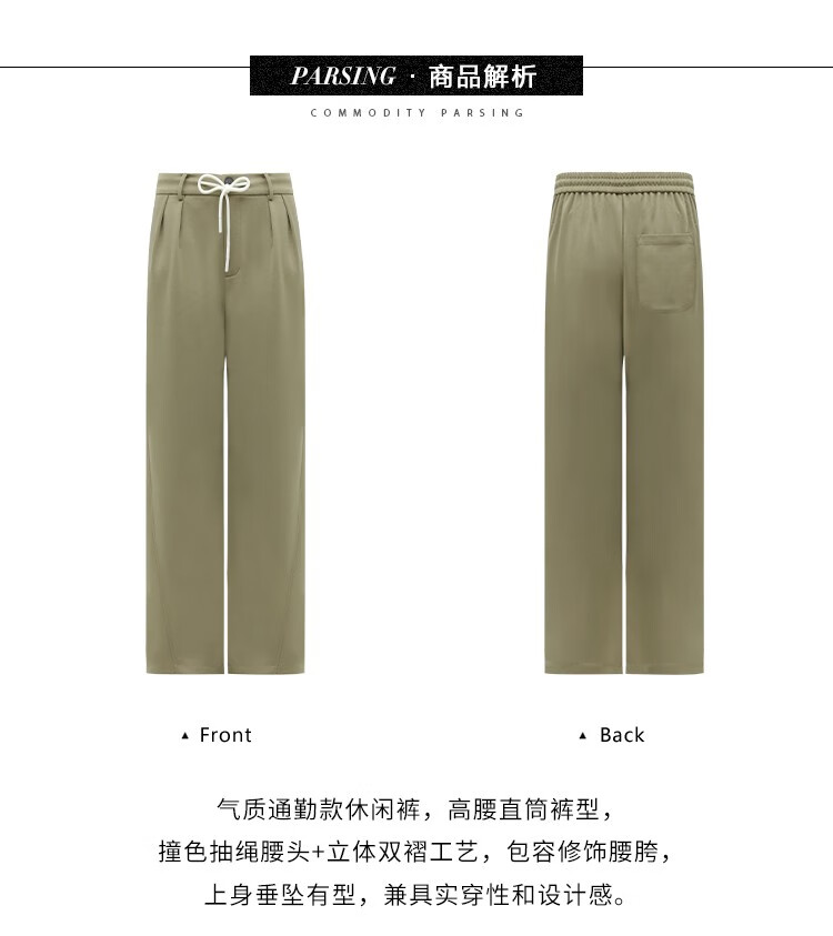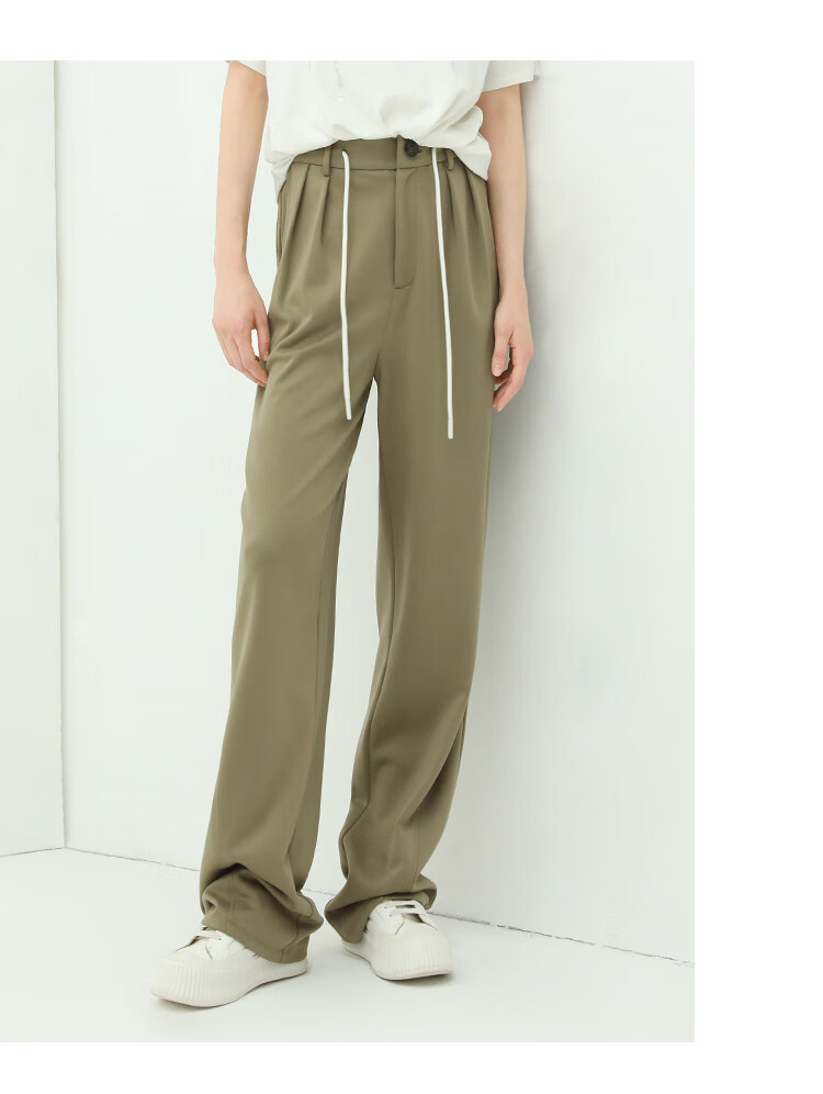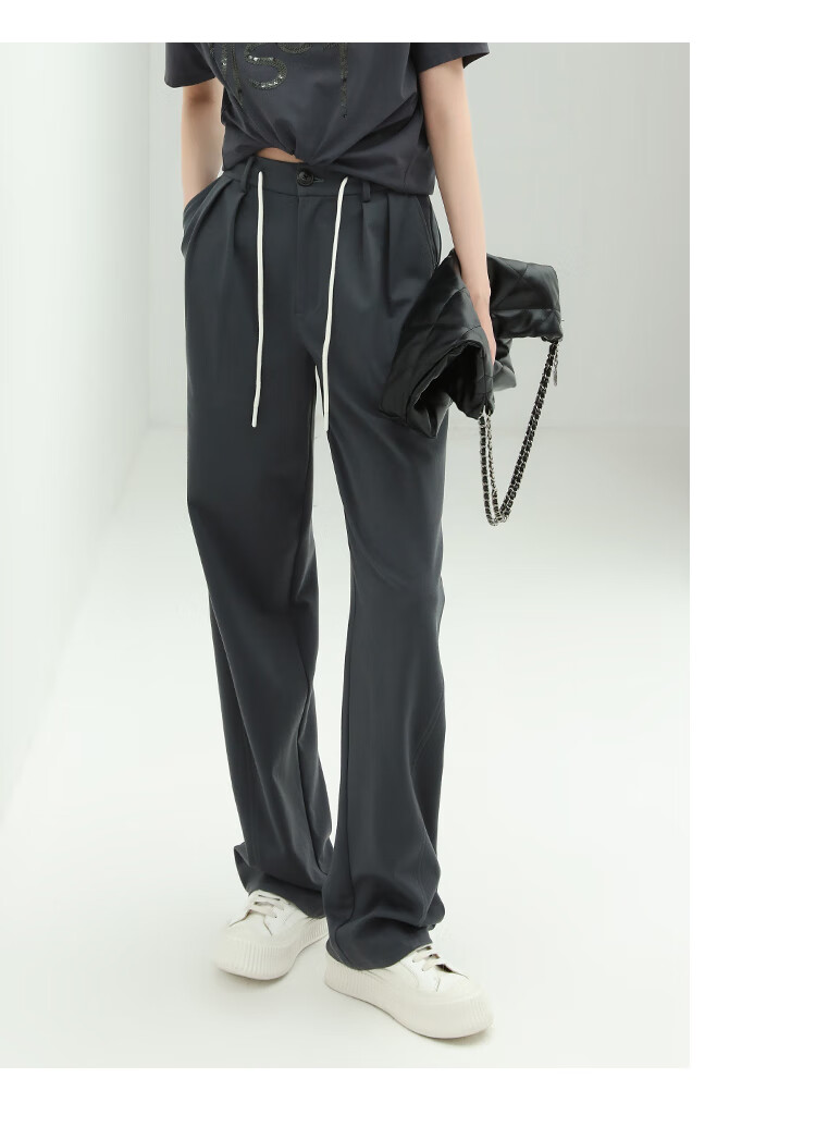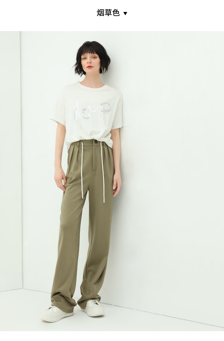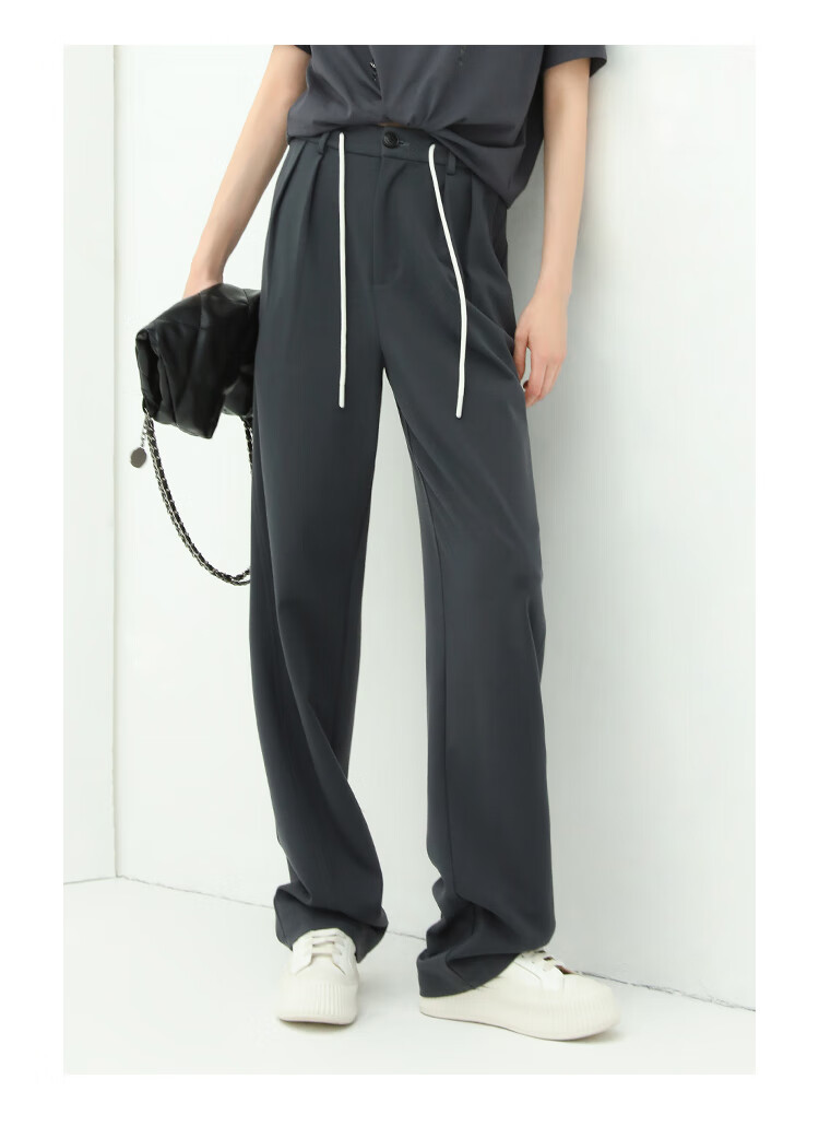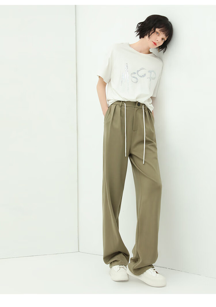 COCOBELLA高腰立体打褶遮胯休闲西裤女宽松垂坠直筒长裤PA929