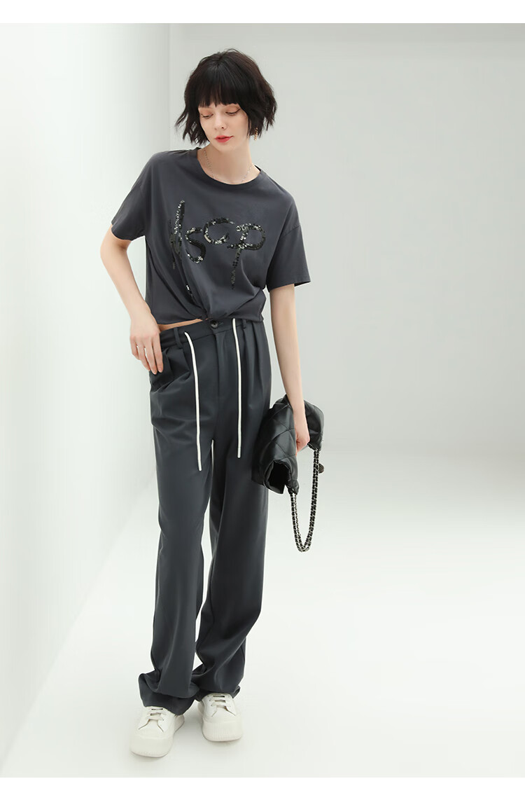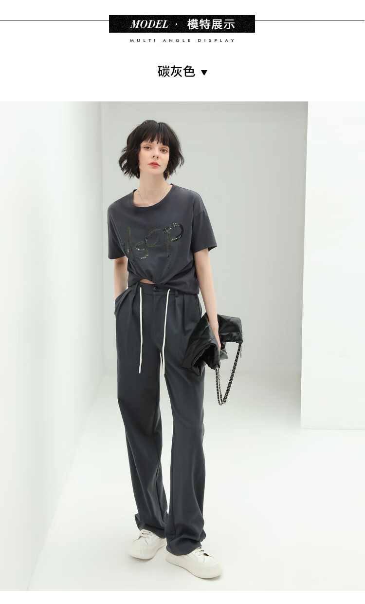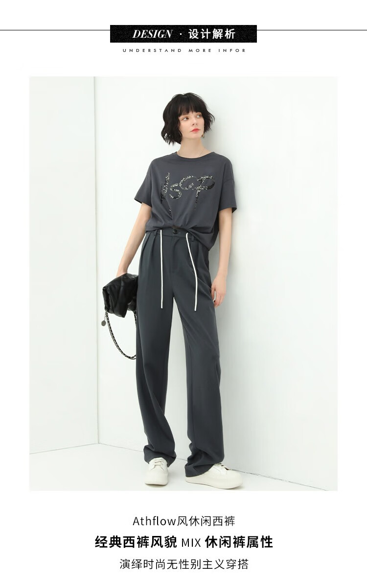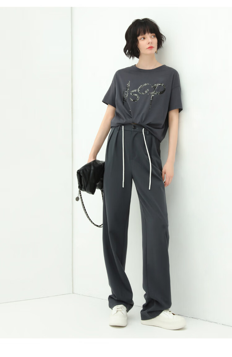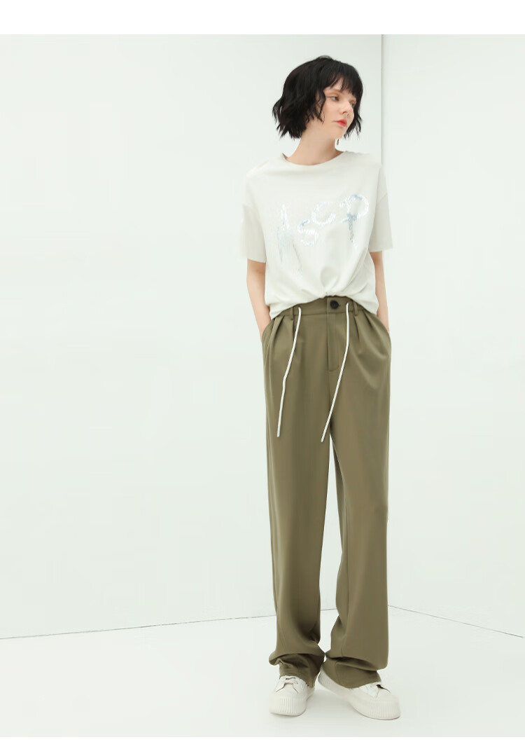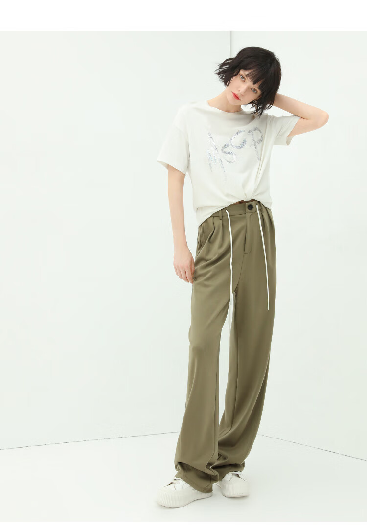 COCOBELLA高腰立体打褶遮胯休闲西裤女宽松垂坠直筒长裤PA929