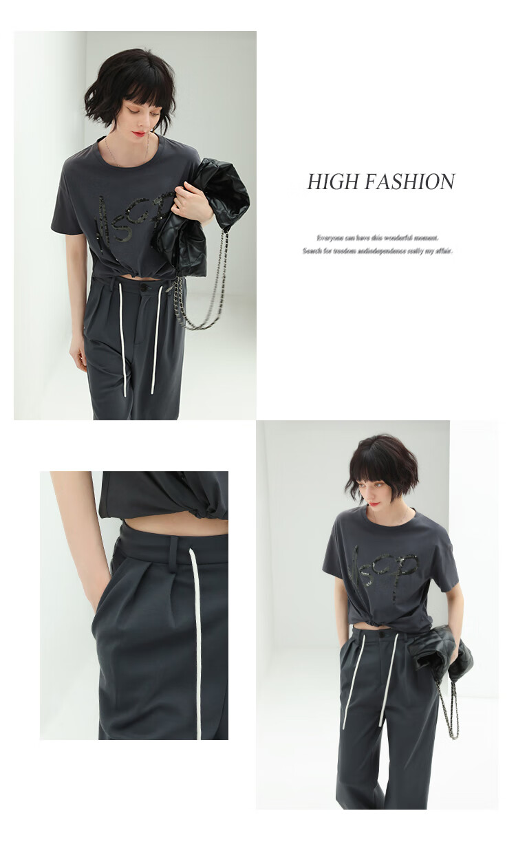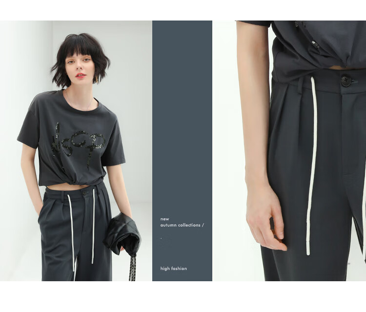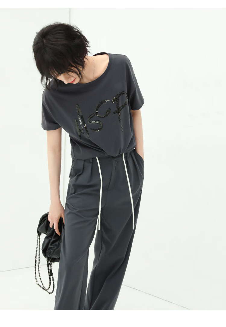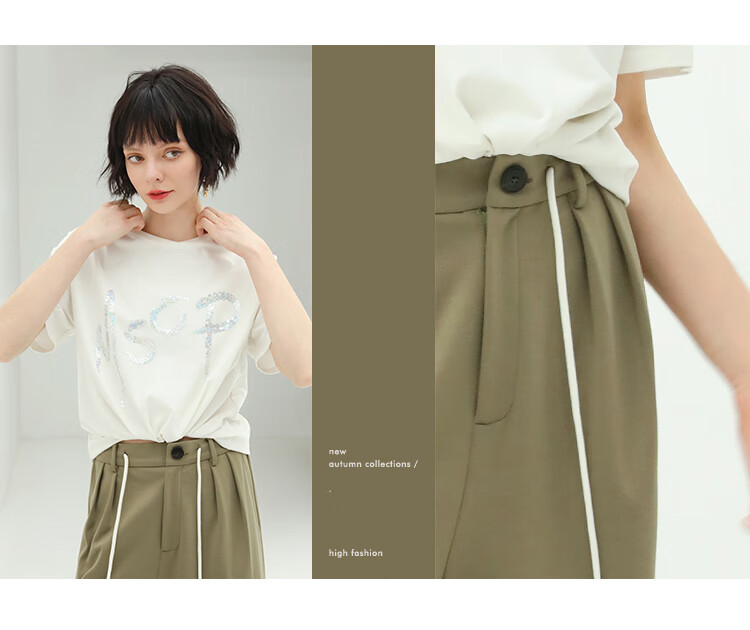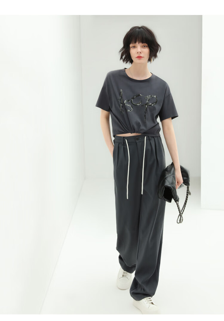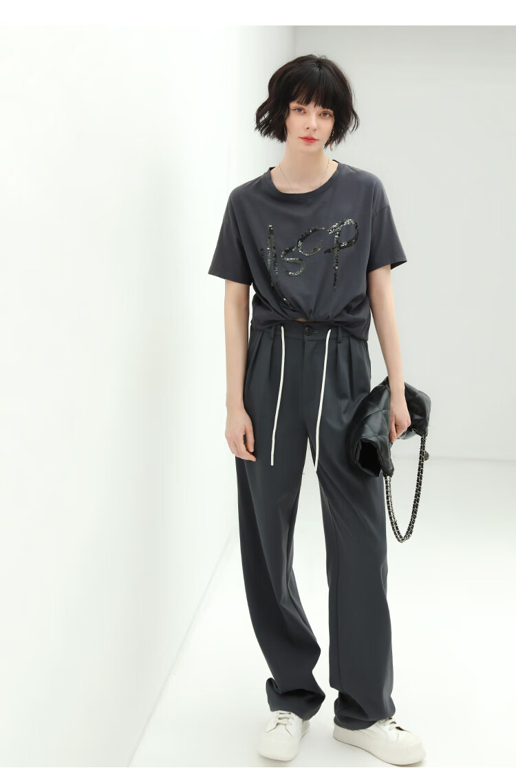 COCOBELLA高腰立体打褶遮胯休闲西裤女宽松垂坠直筒长裤PA929