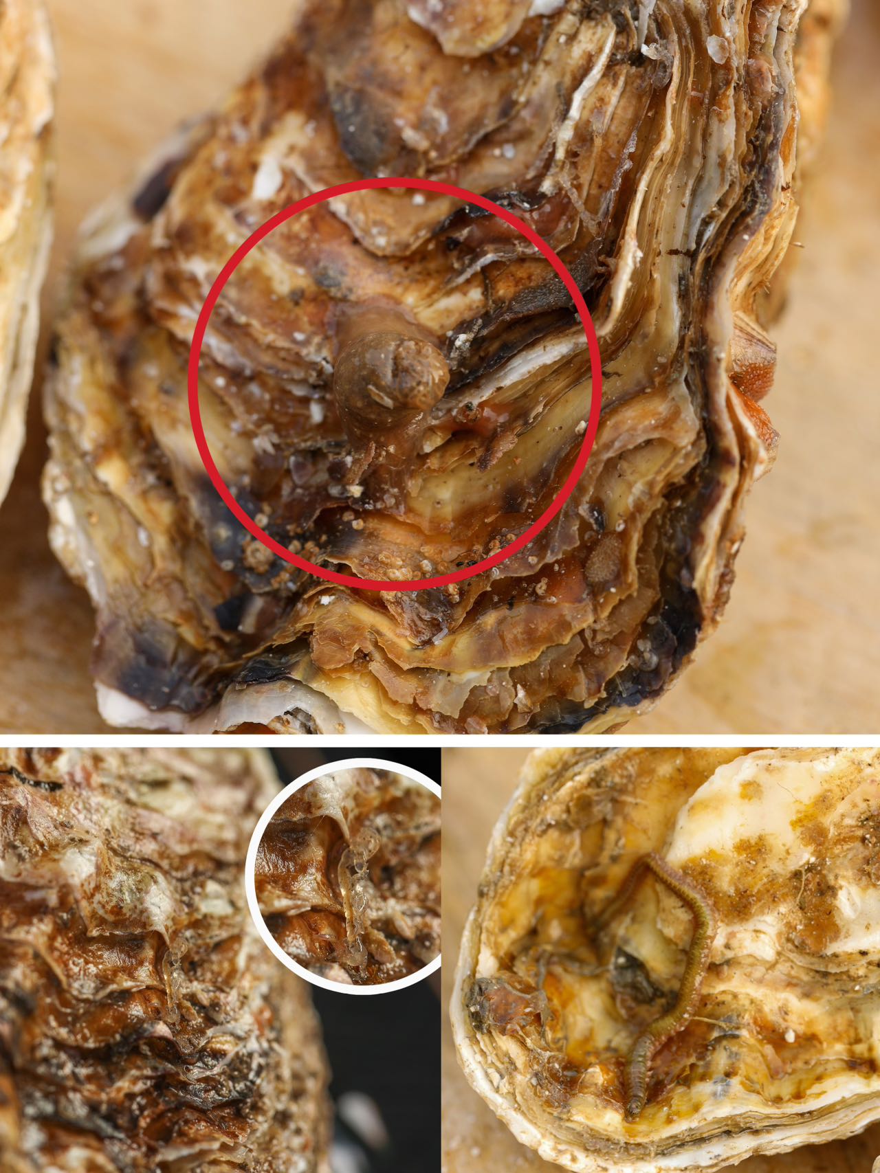 收到生蚝以后,可能壳上会附着一些小虾米.海蚯蚓.海葵等微生物