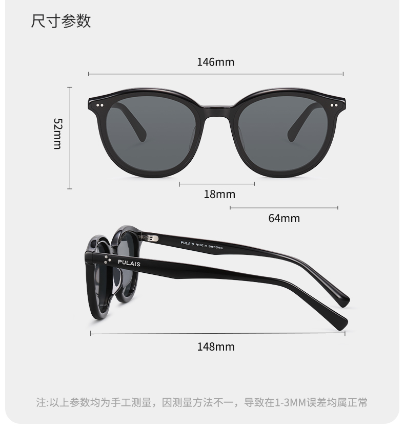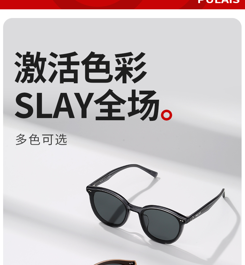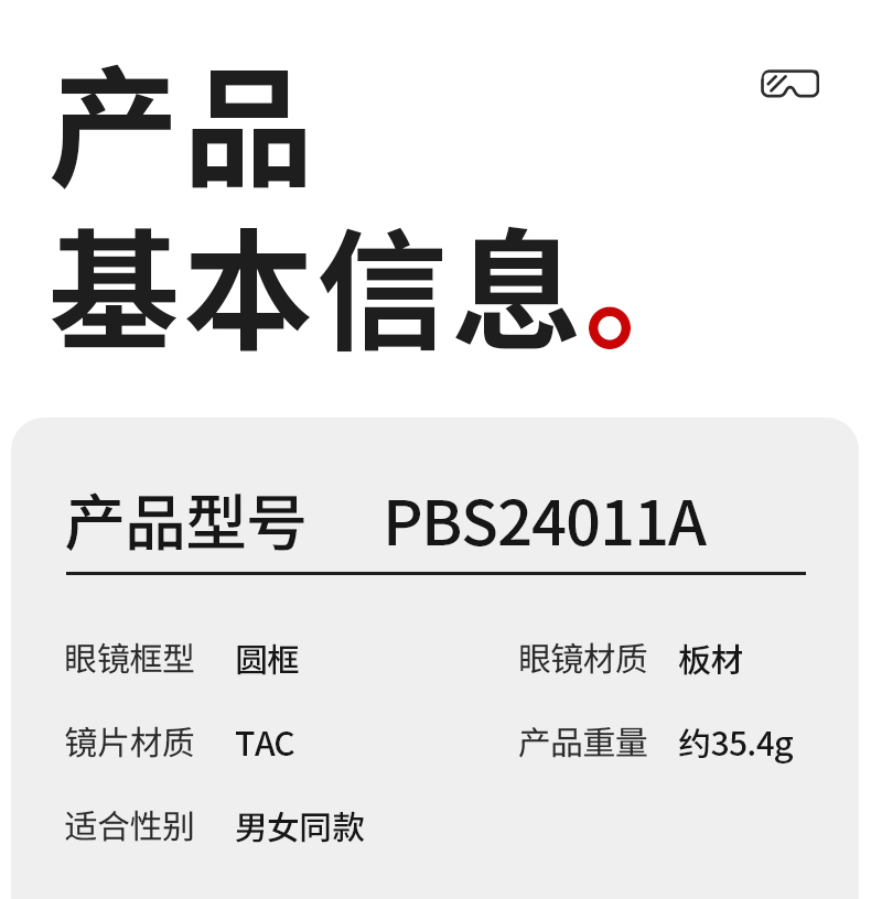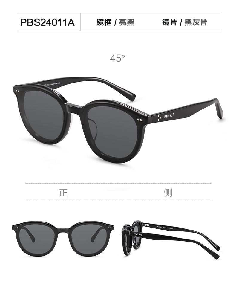 普莱斯新款太阳镜PBS24011A 酷感未来小黑镜 优质板材镜框 TAC偏光镜片 修颜宽边镜腿 男女同款 三色可选
