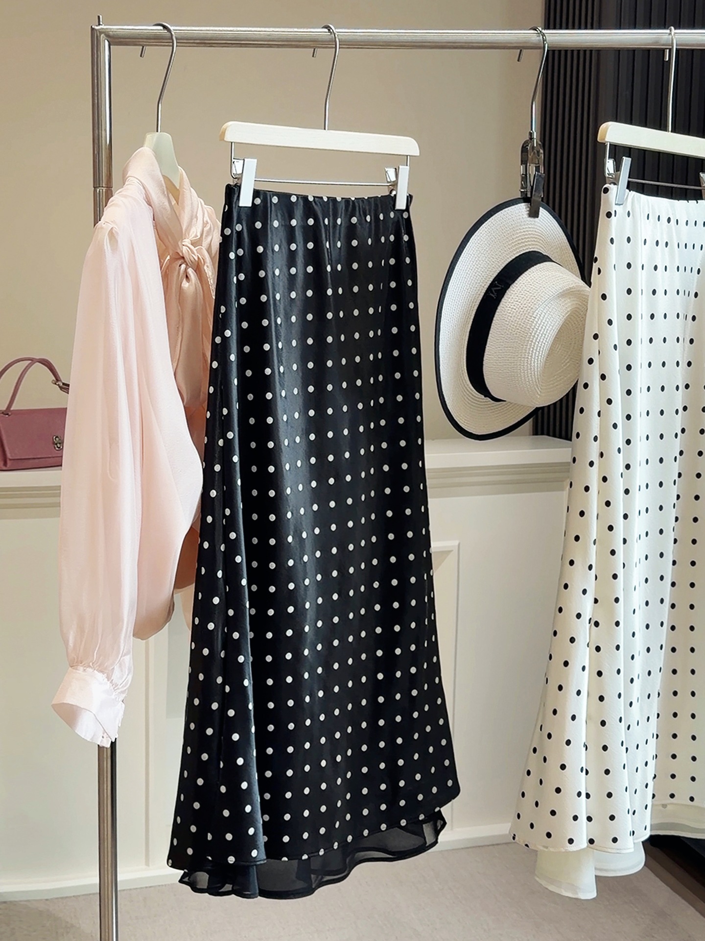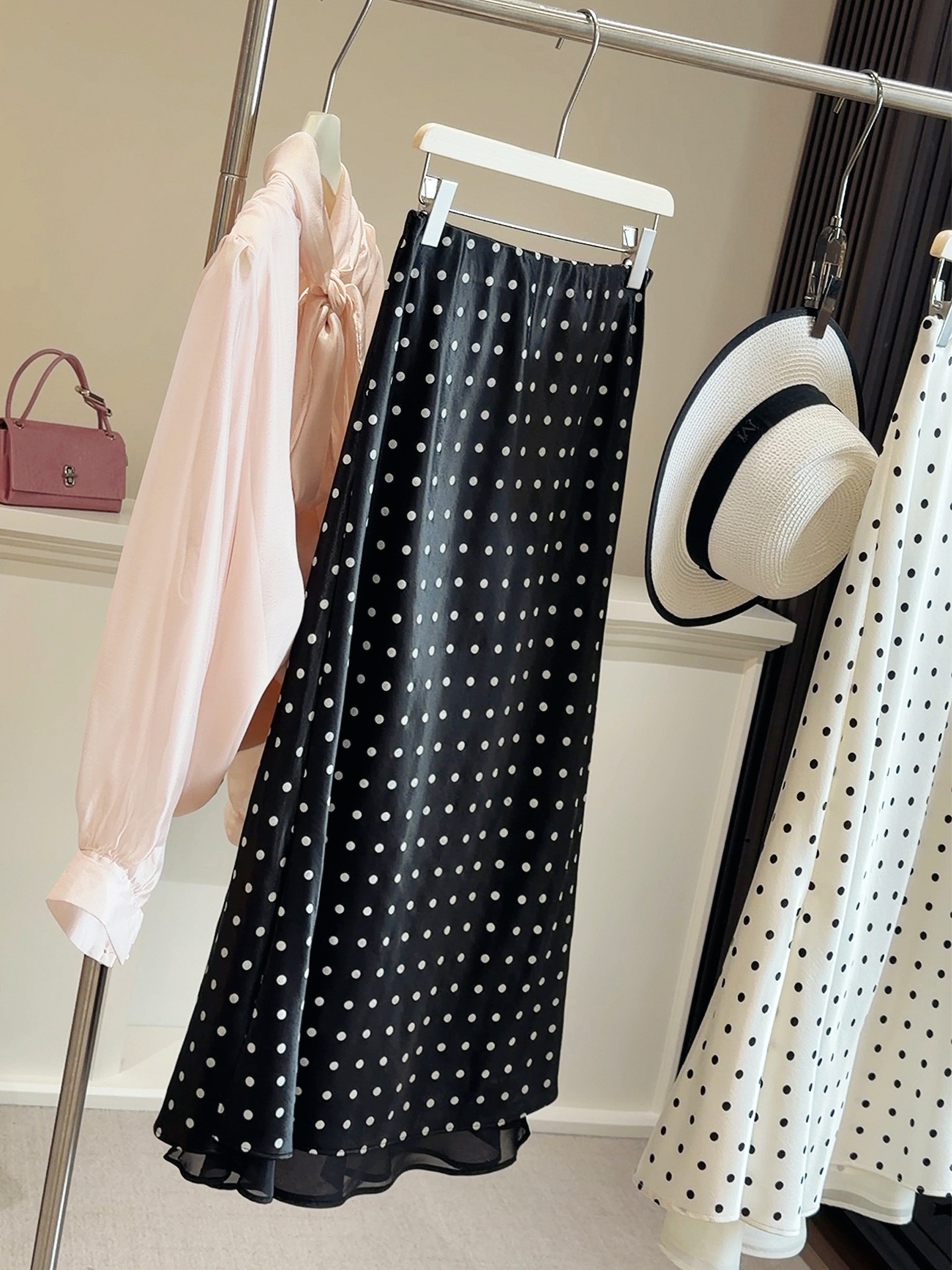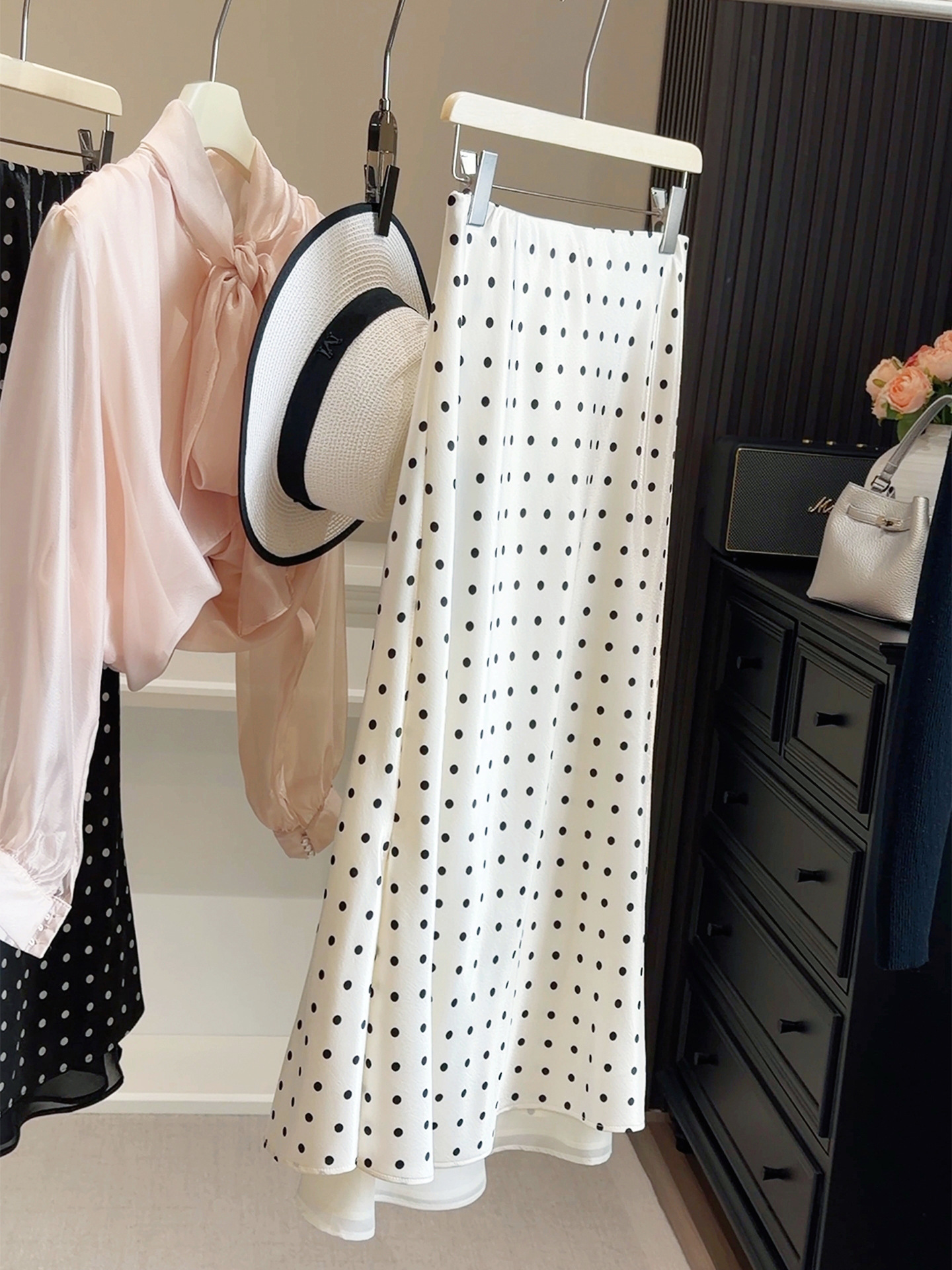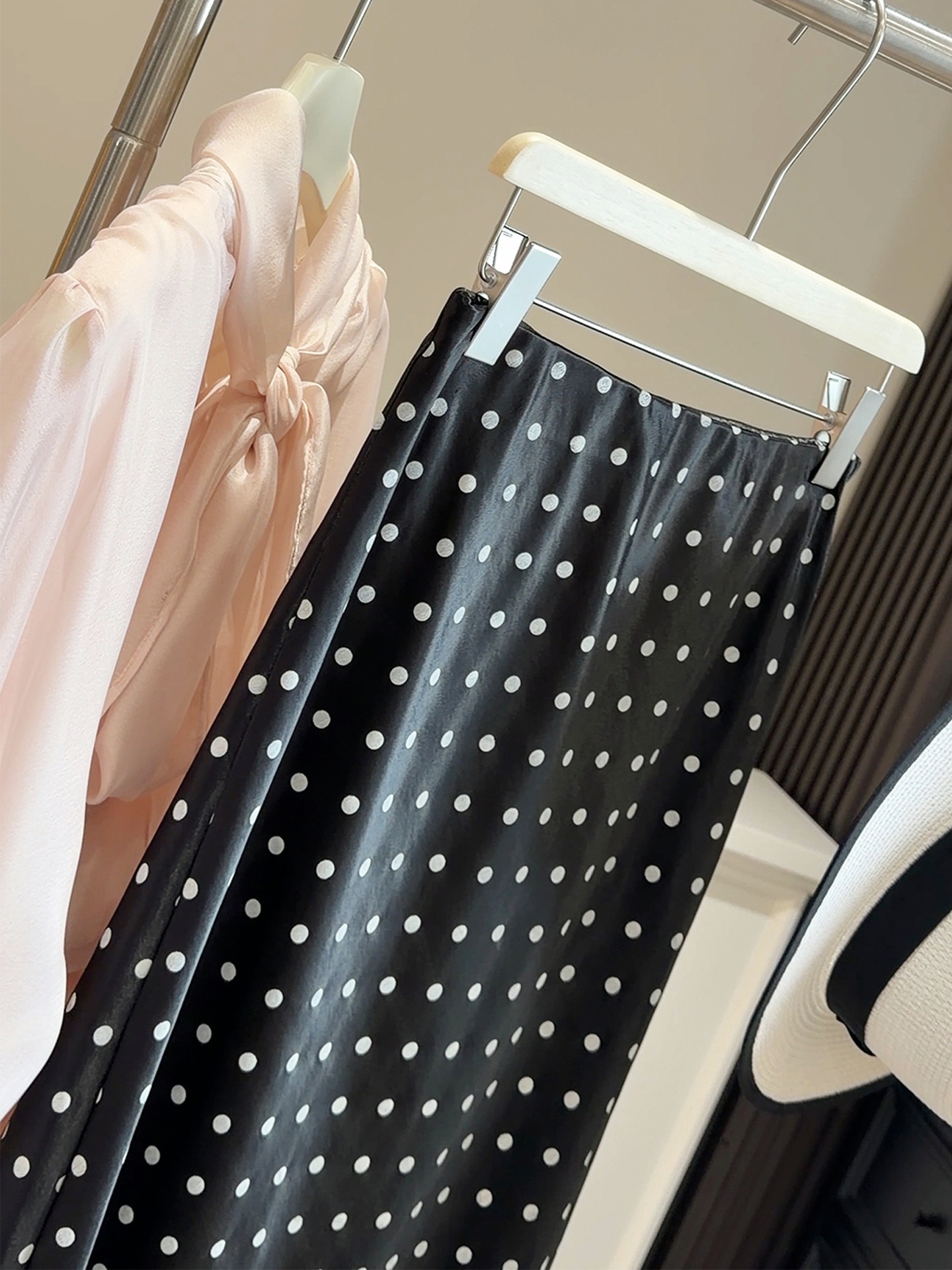 【2026新款!包臀鱼尾裙】波点醋酸缎面丝滑拼接半身裙 女2026春夏季新款包臀鱼尾裙开叉长裙
