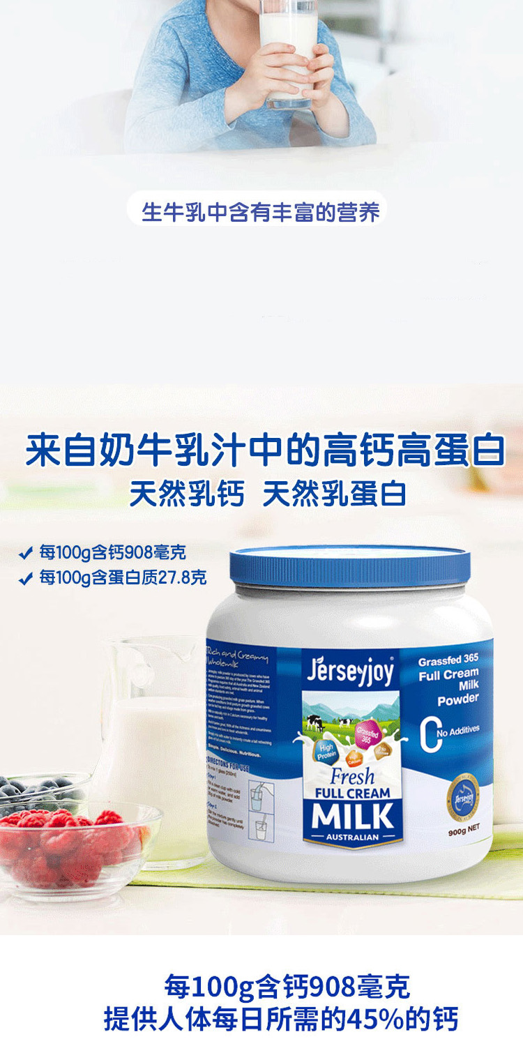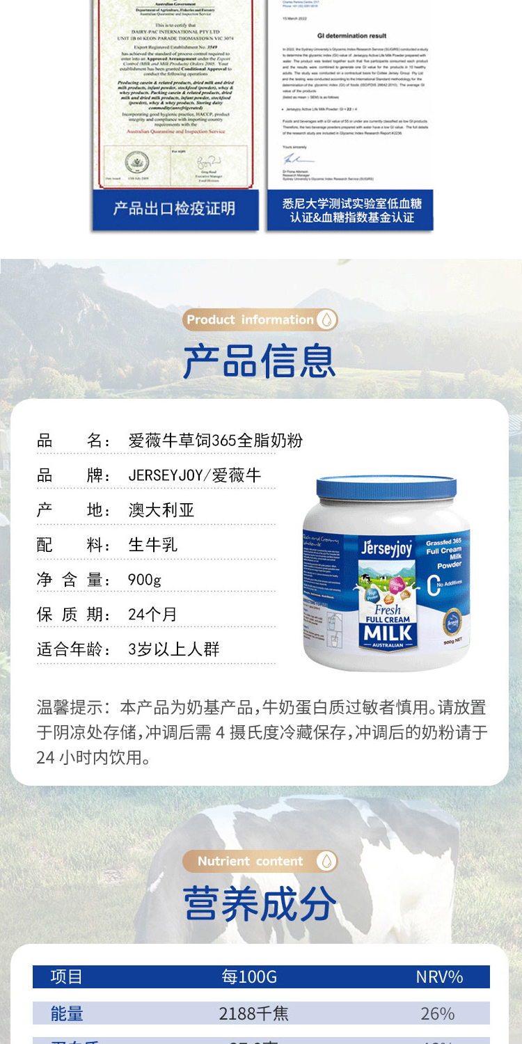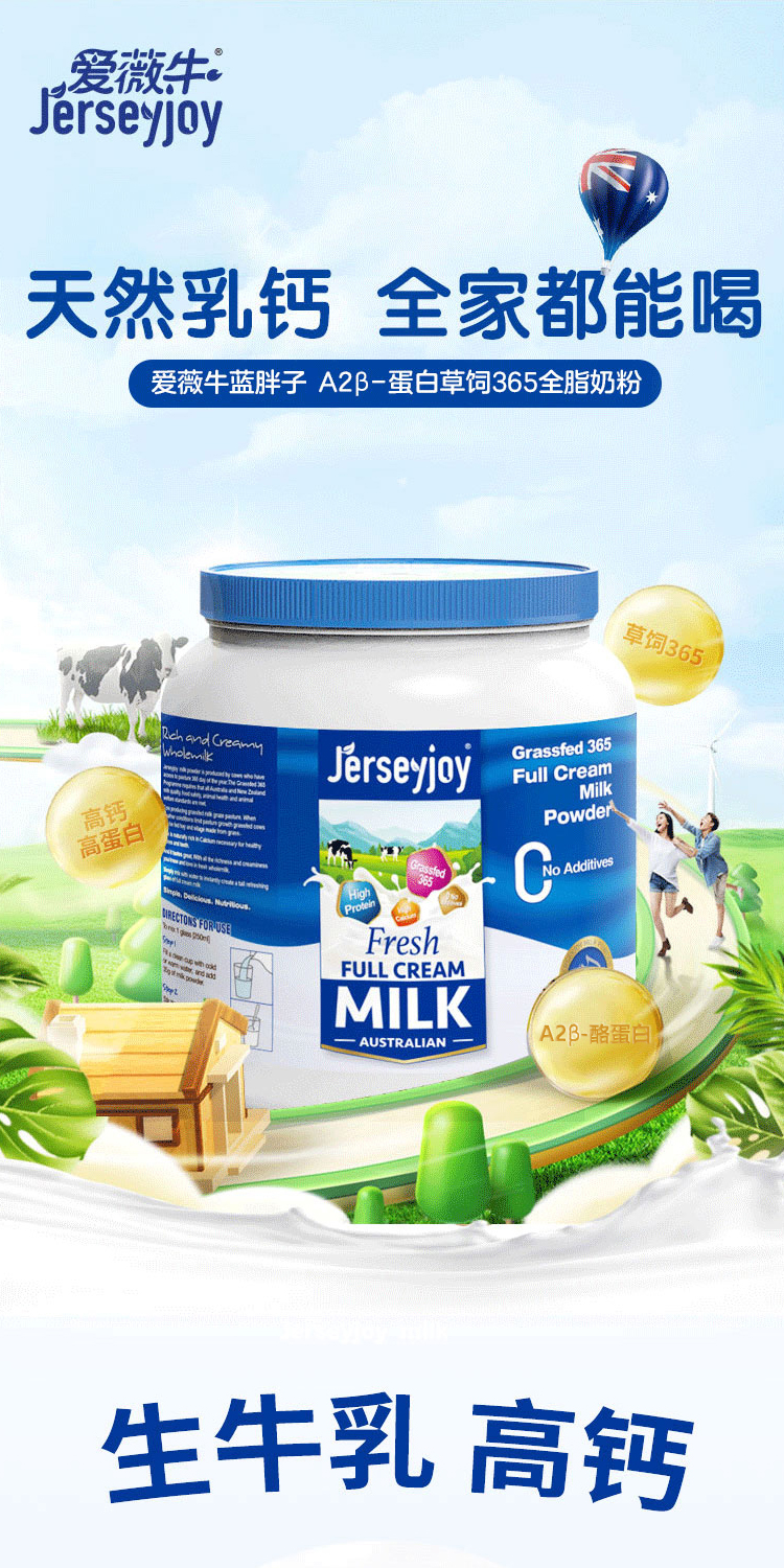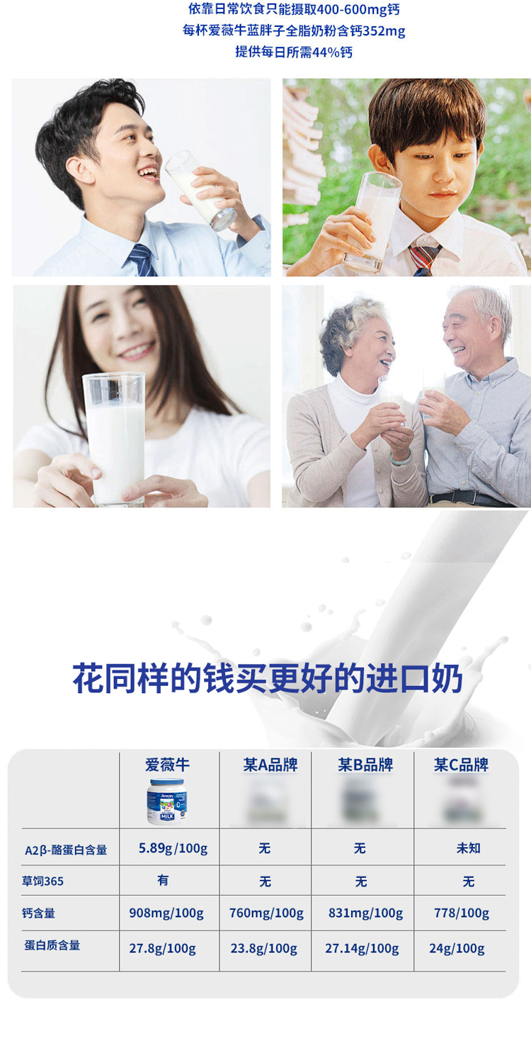 爱薇牛草饲365全脂奶粉儿童奶粉 900g/罐 【保税进口】