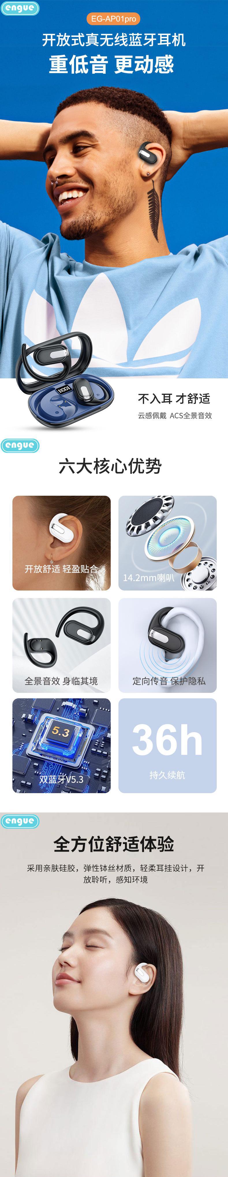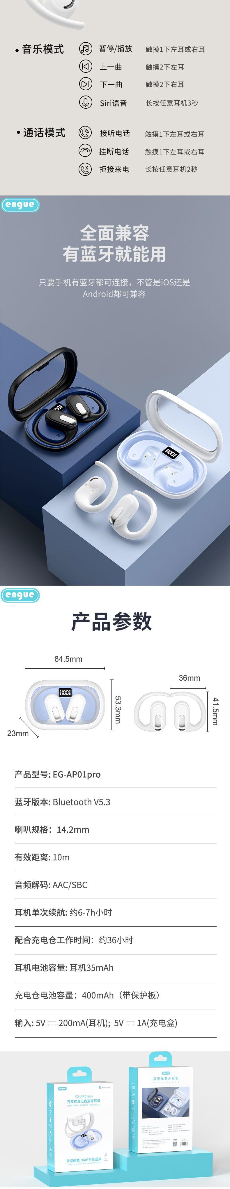 【自营】engue恩谷挂耳TWS真无线蓝牙耳机(迷你)EG-AP01pro跑步狂甩不掉运动防水