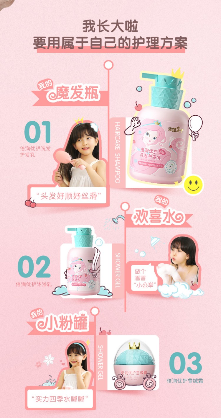 【自营】儿童洗发水儿专用女孩3-15洗沐套装500ml*2