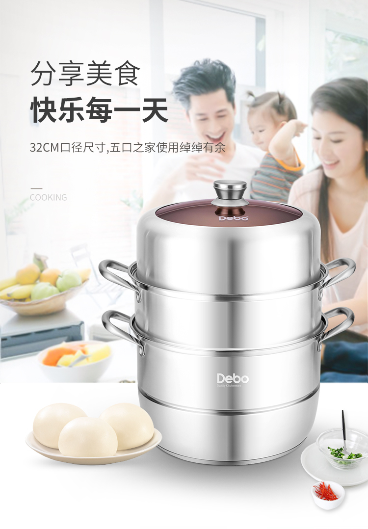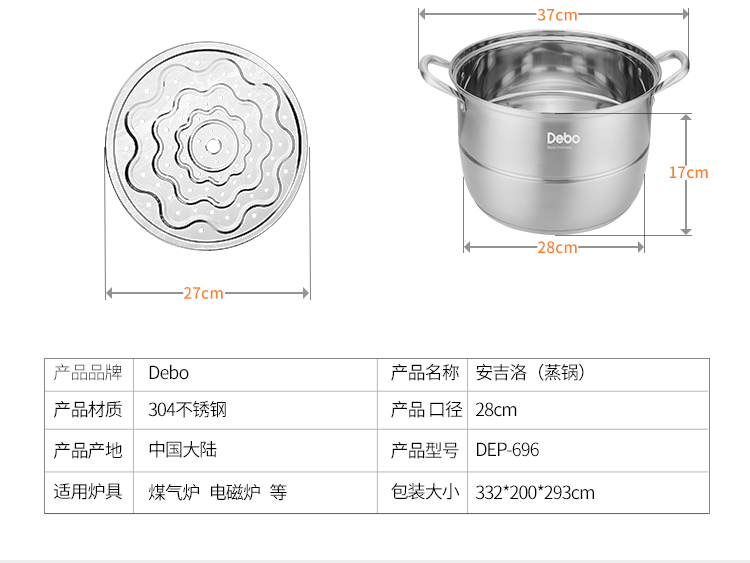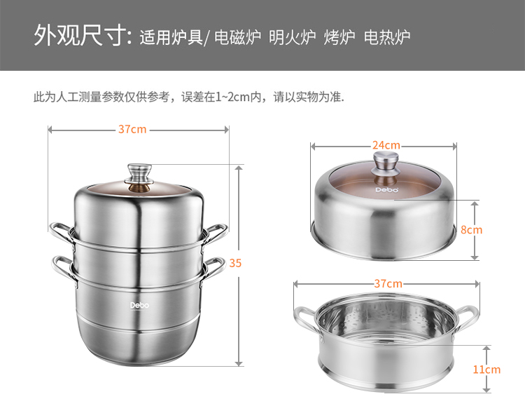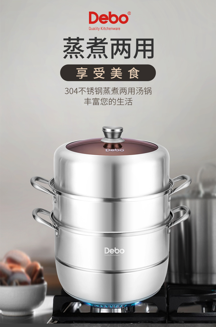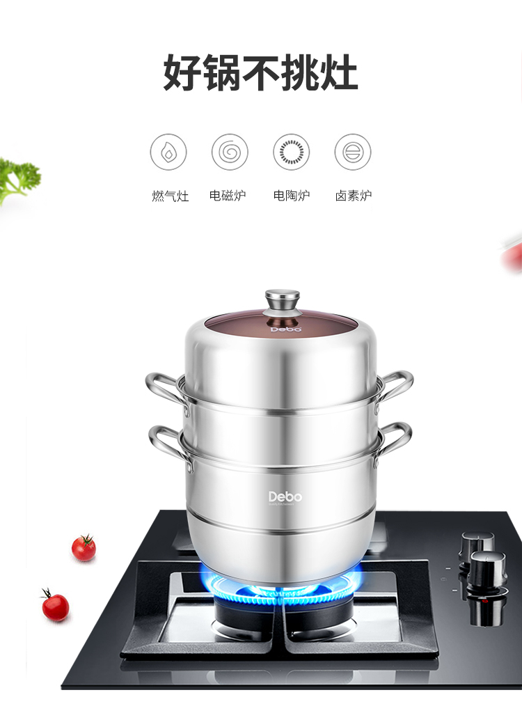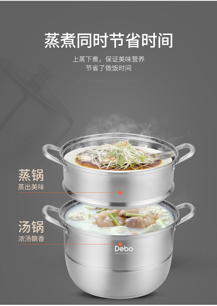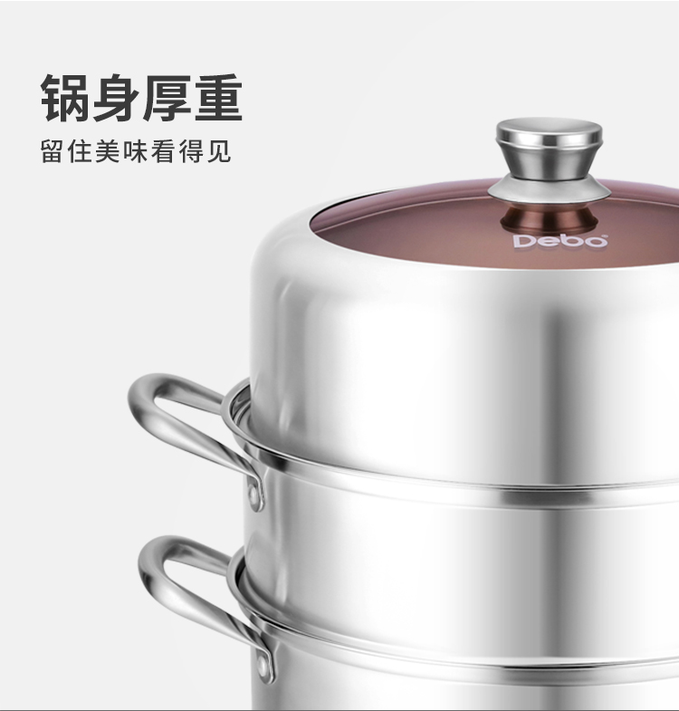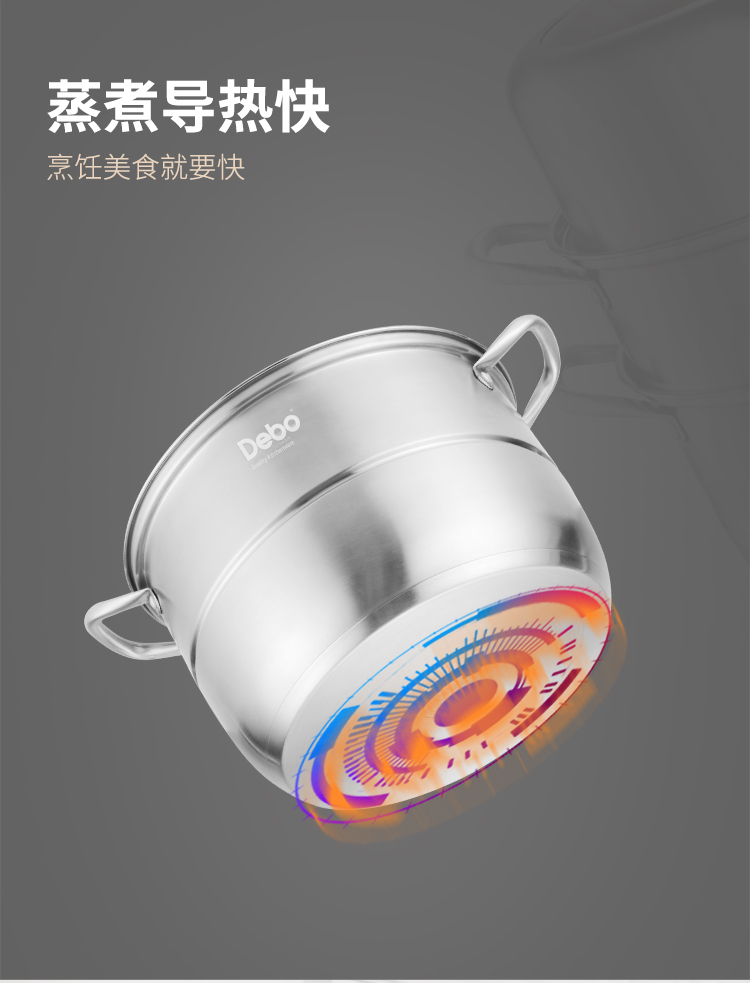 Debo德铂-安吉洛7L蒸锅 盖兹卡10L蒸锅 玛格丽12L蒸锅 聚能复底 蒸,焖,炖食物更美味(配锅盖、蒸片、蒸格)