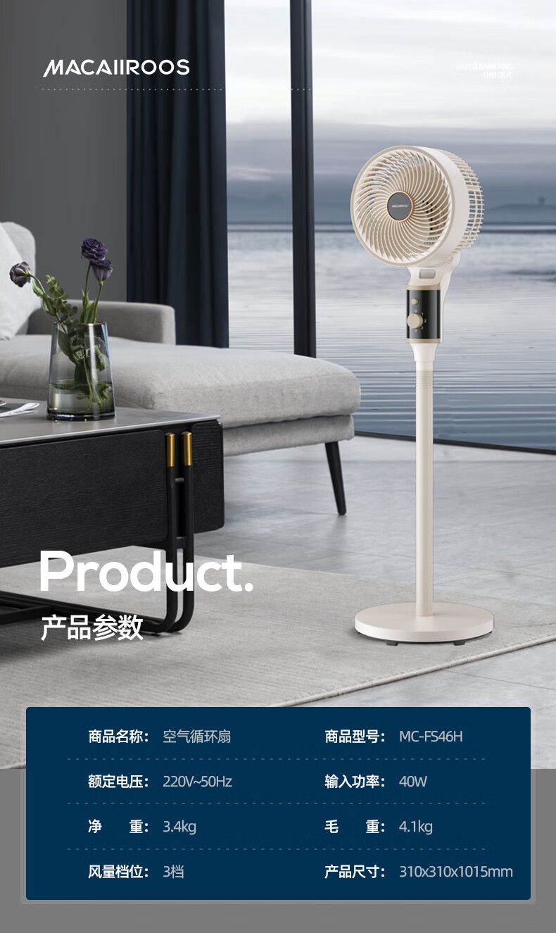 【小家电】迈卡罗MC-FS46H空气循环扇电风扇家用净化循环智能落地扇轻音大风力台立式HF