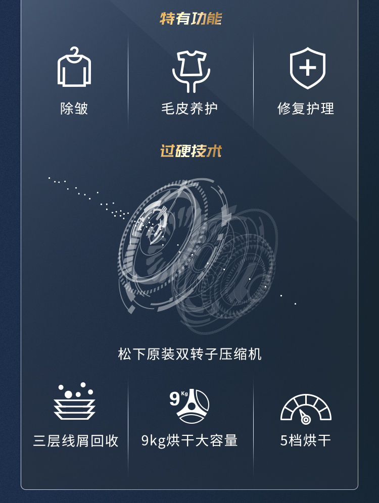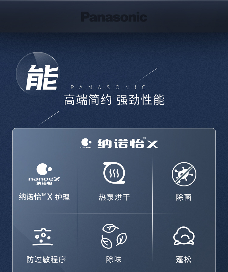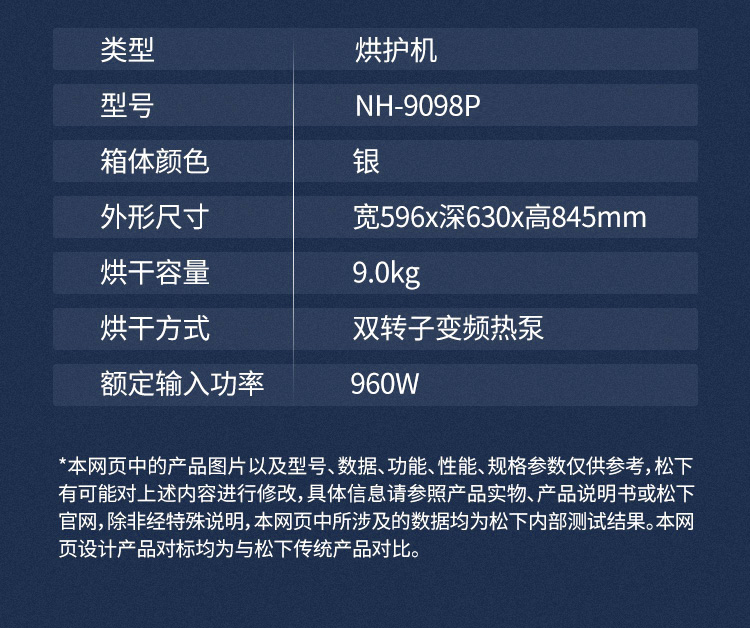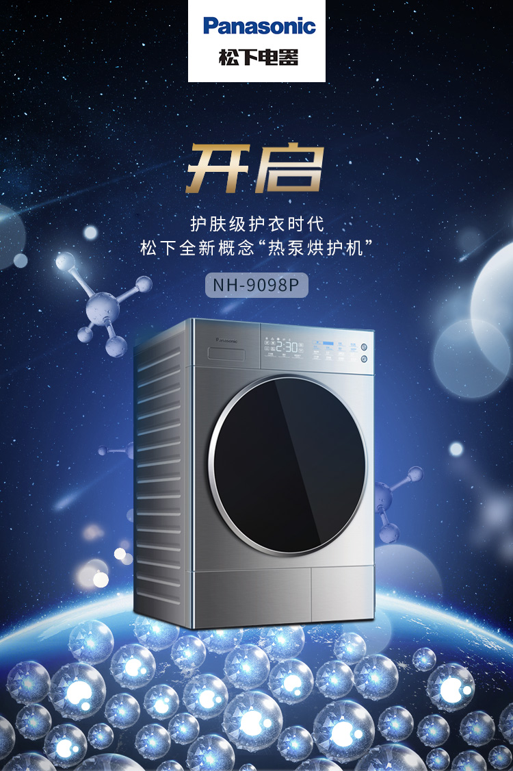 松下(Panasonic)热泵式烘干机干衣机 9公斤家用烘护机 纳诺怡护理 除菌除螨防过敏 蓬松除皱 NH-9098P【烘护机】