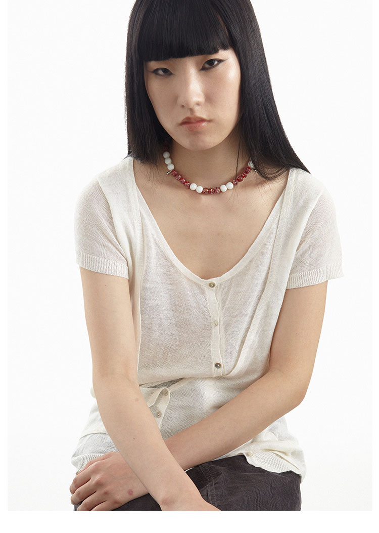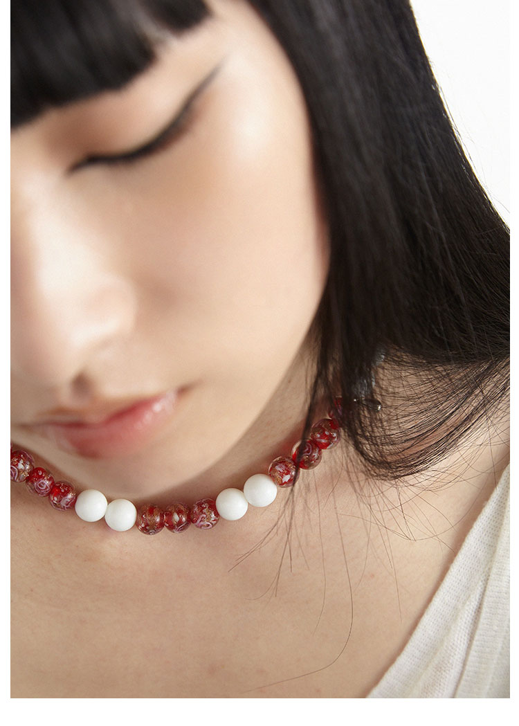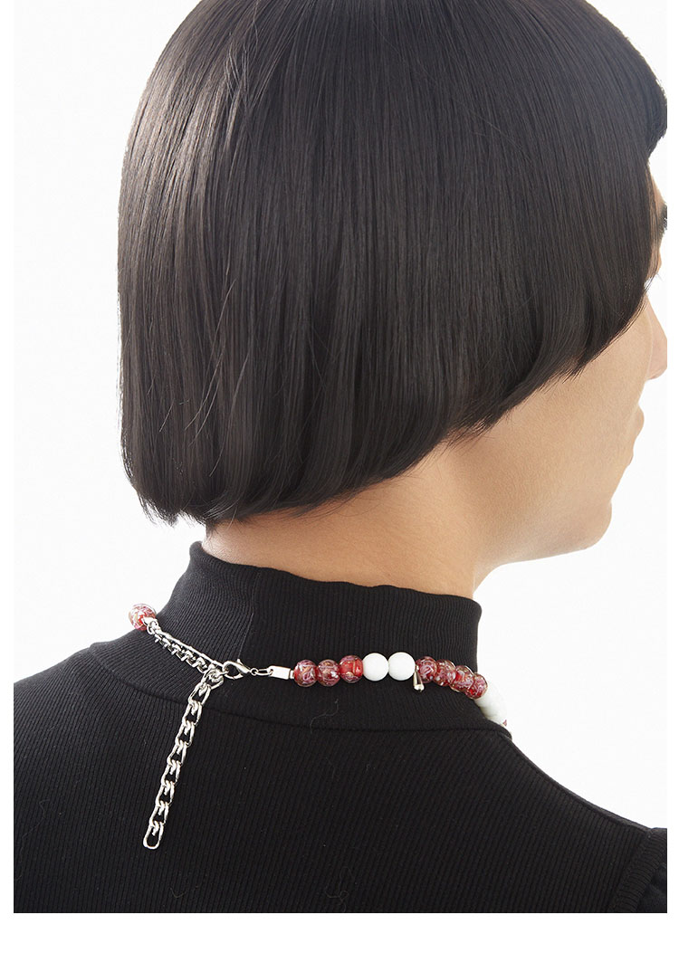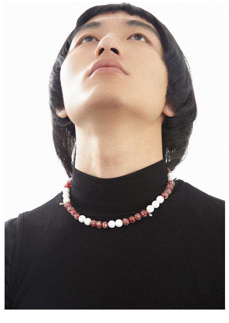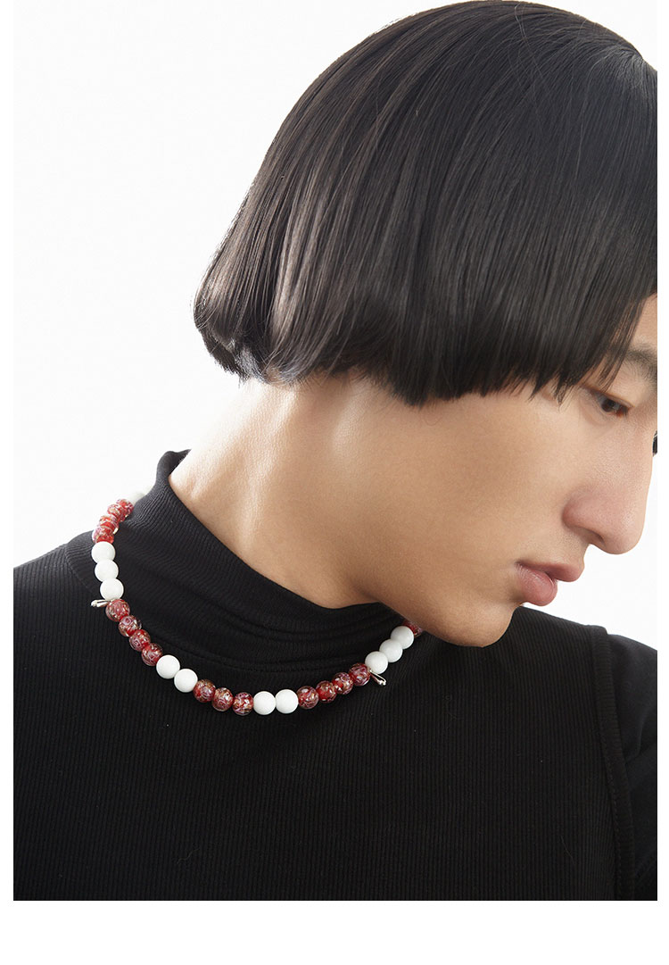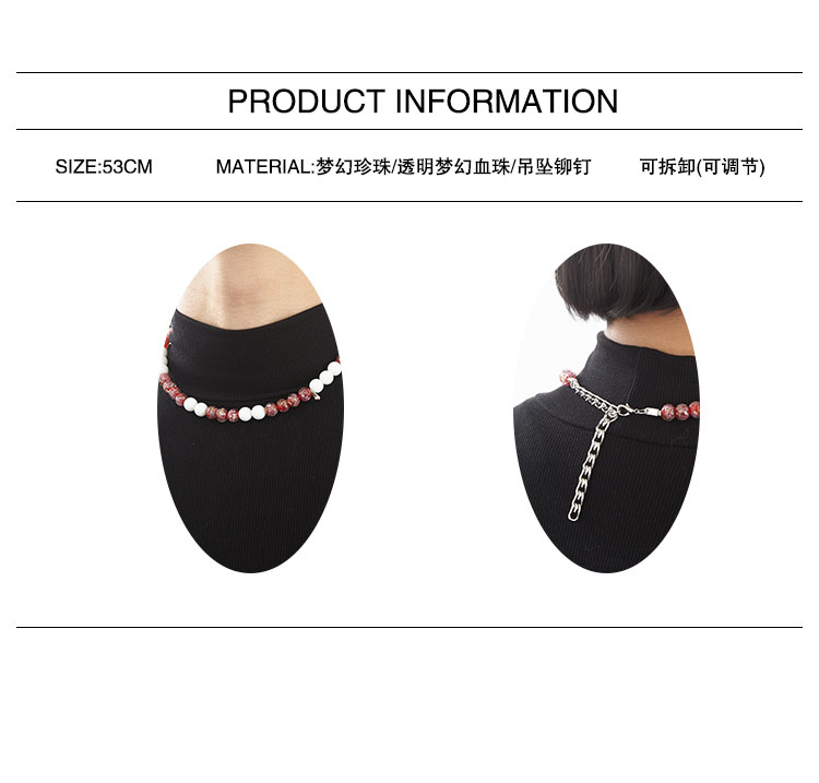 QZC2000 红色血滴纹理珍珠梦幻珍珠铆钉吊坠可调节项链男女饰品