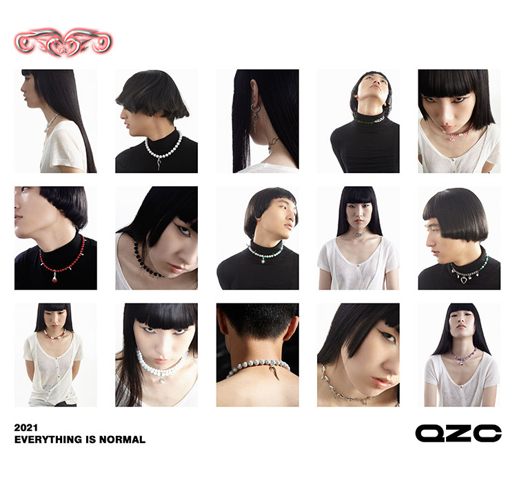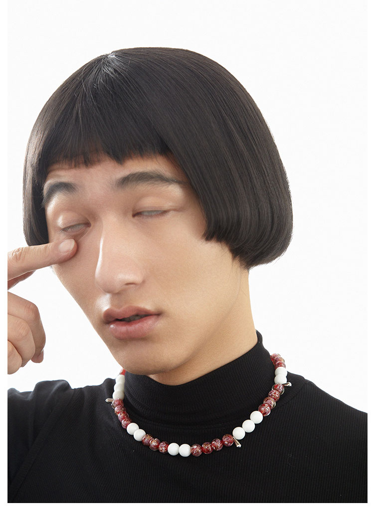 QZC2000 朋克暗黑风梦幻珍珠铆钉吊坠串珠磁铁吸扣项链男女同款