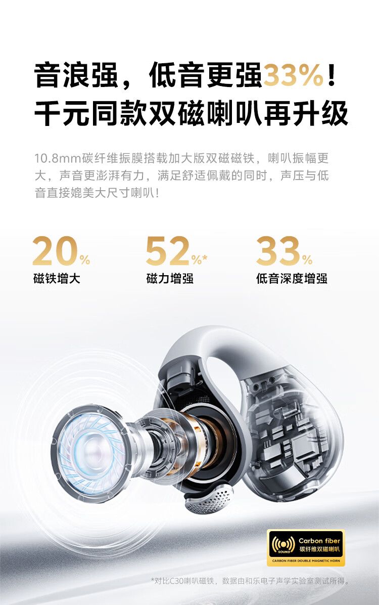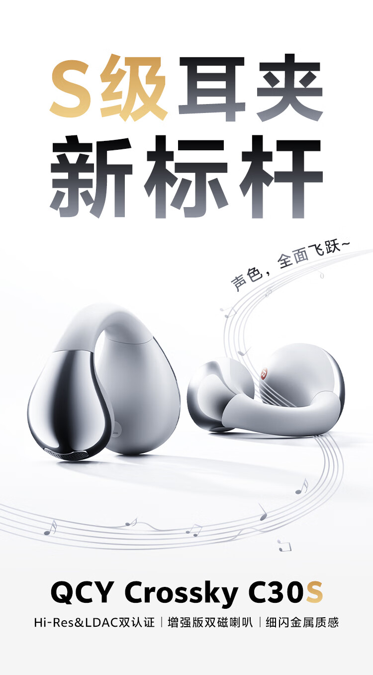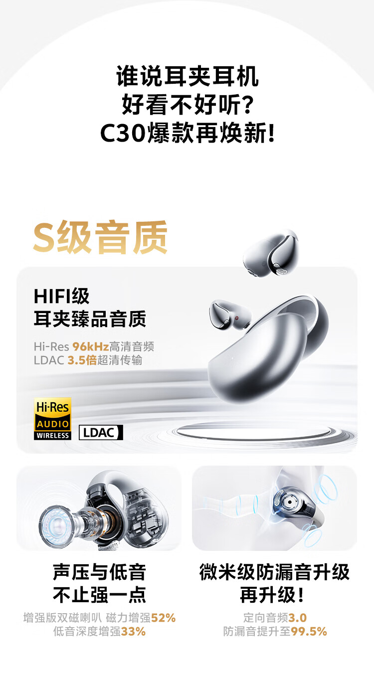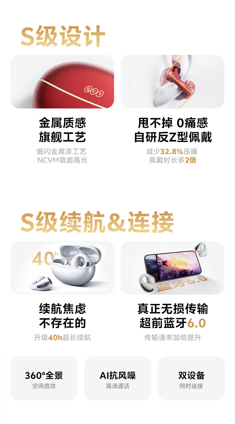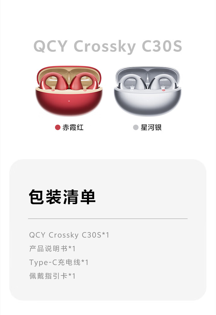 QCY Crossky C30S 耳夹耳机 不入耳开放式无线蓝牙耳机 舒适稳固佩戴长续航 赤霞红