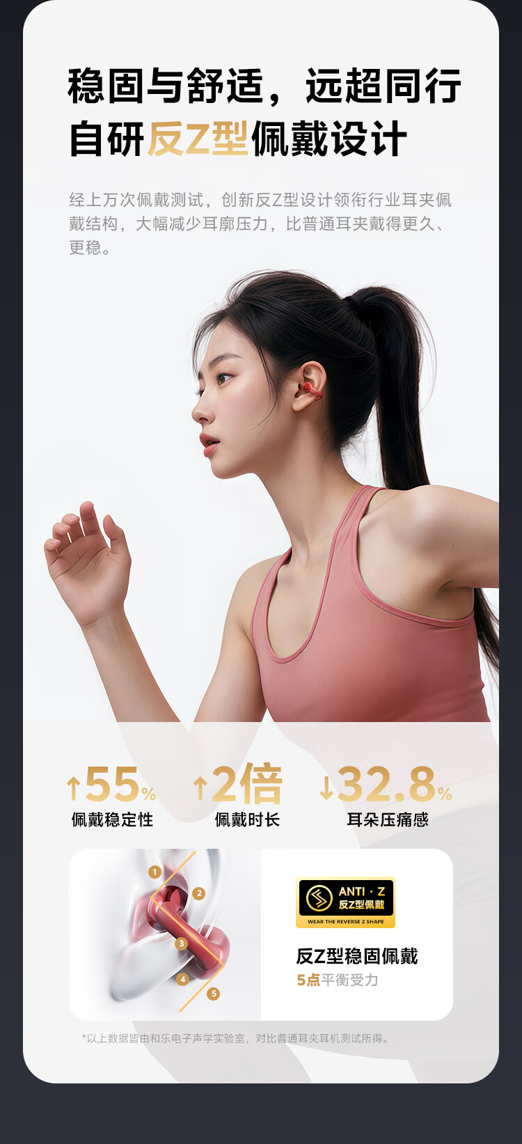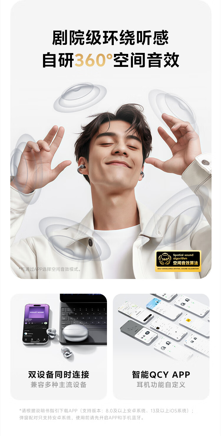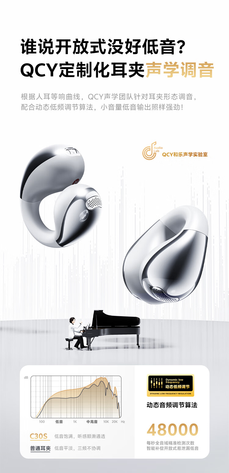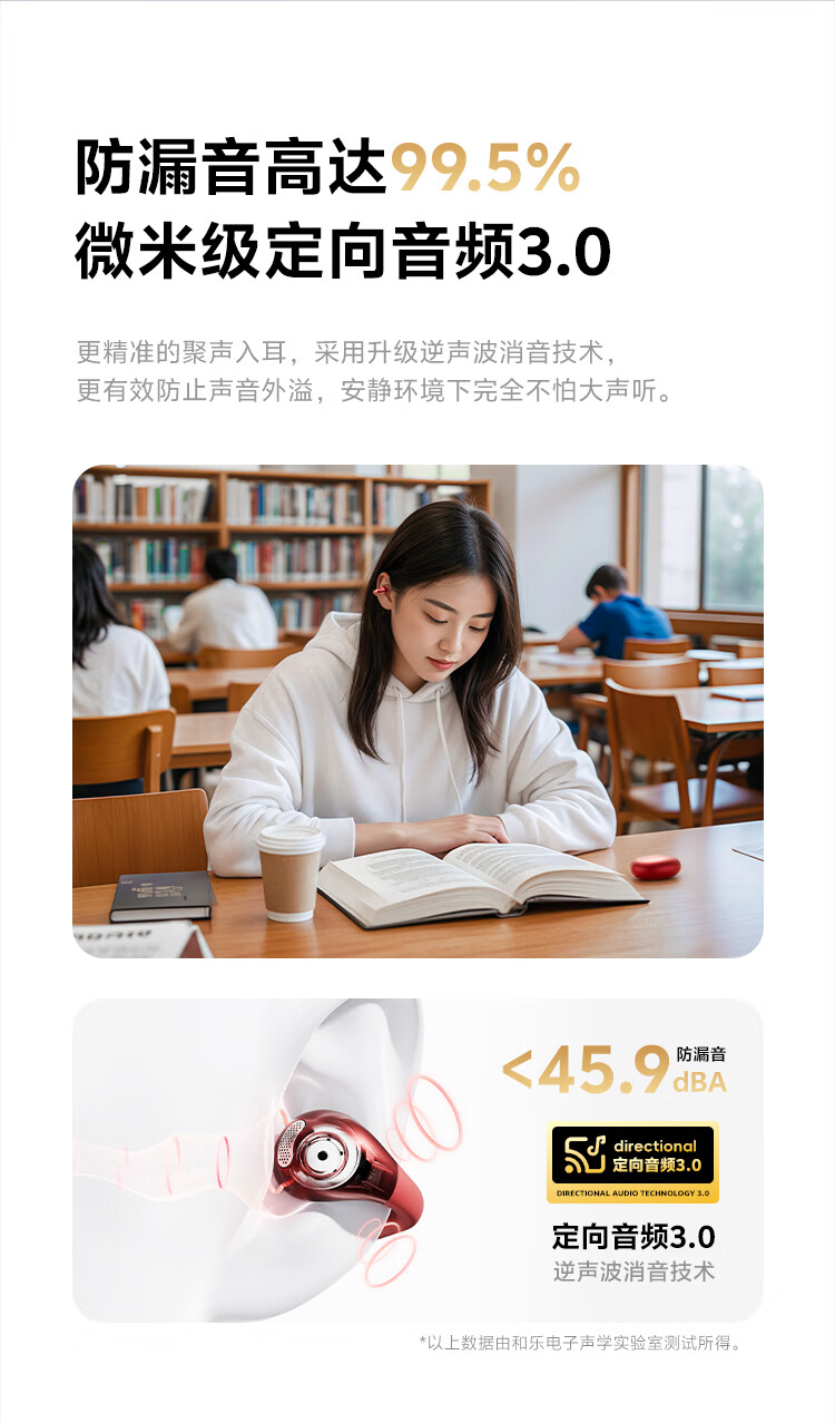 QCY Crossky C30S 耳夹耳机 不入耳开放式无线蓝牙耳机 舒适稳固佩戴长续航 赤霞红