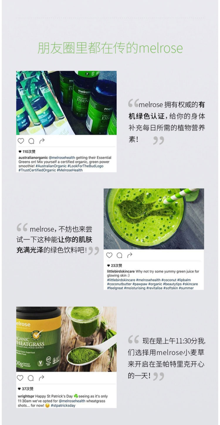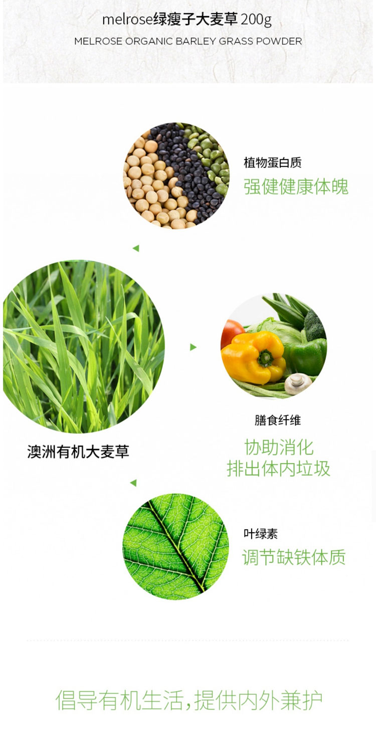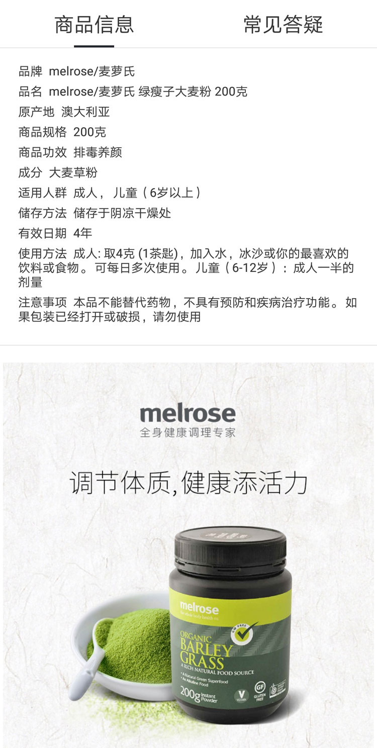 melrose麦萝氏 澳洲有机大麦草粉 绿瘦子大麦草 200g 澳大利亚