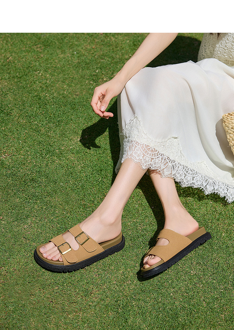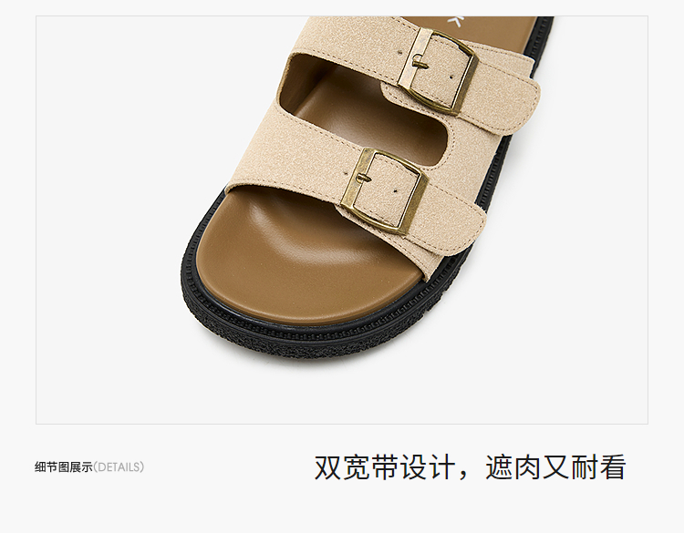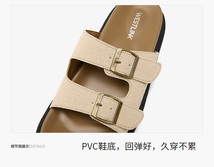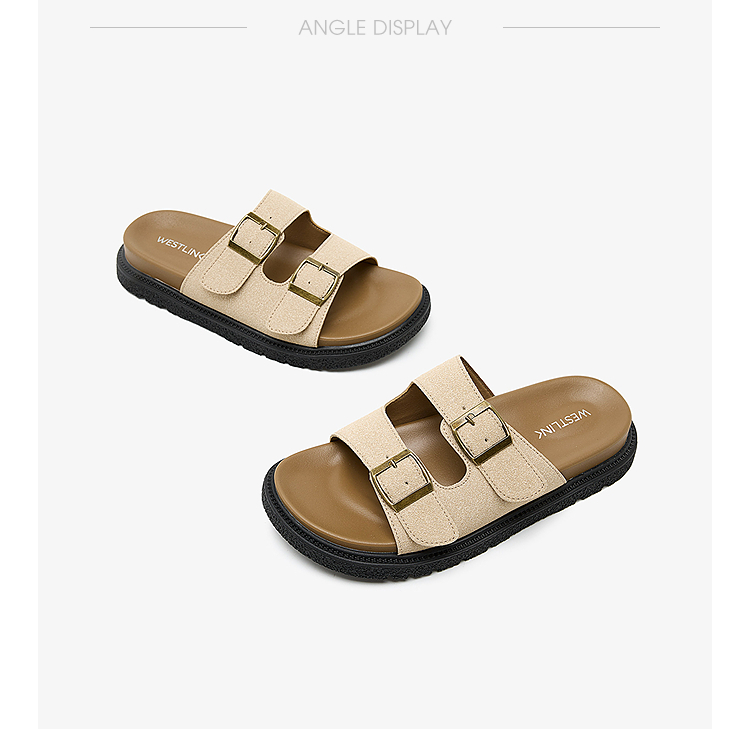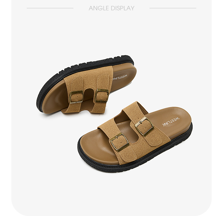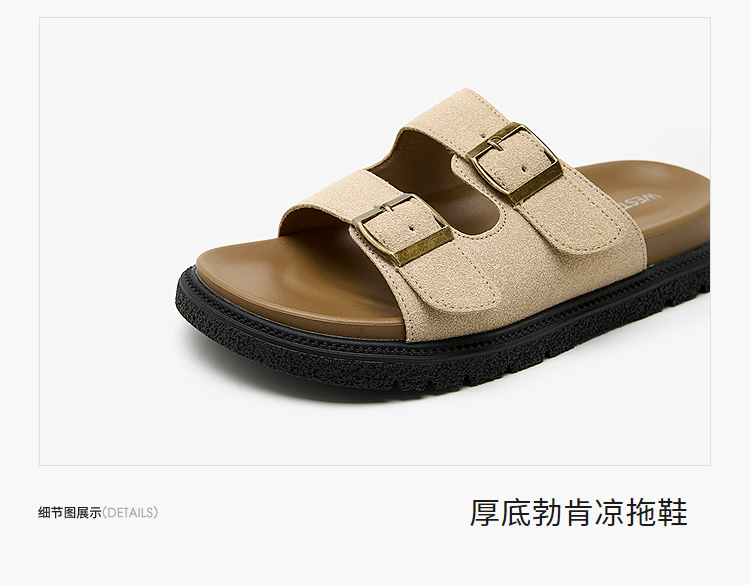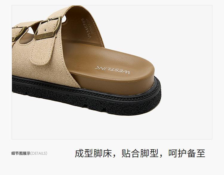 西遇勃肯凉拖鞋女新款夏季休闲海边沙滩一字拖鞋外穿厚底凉鞋V0066380