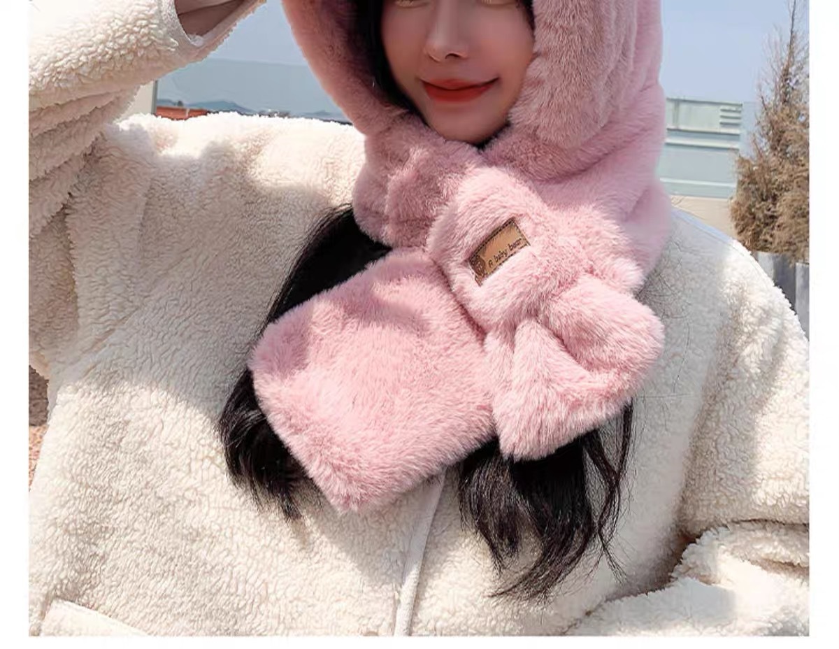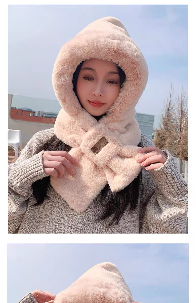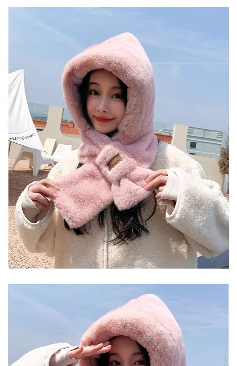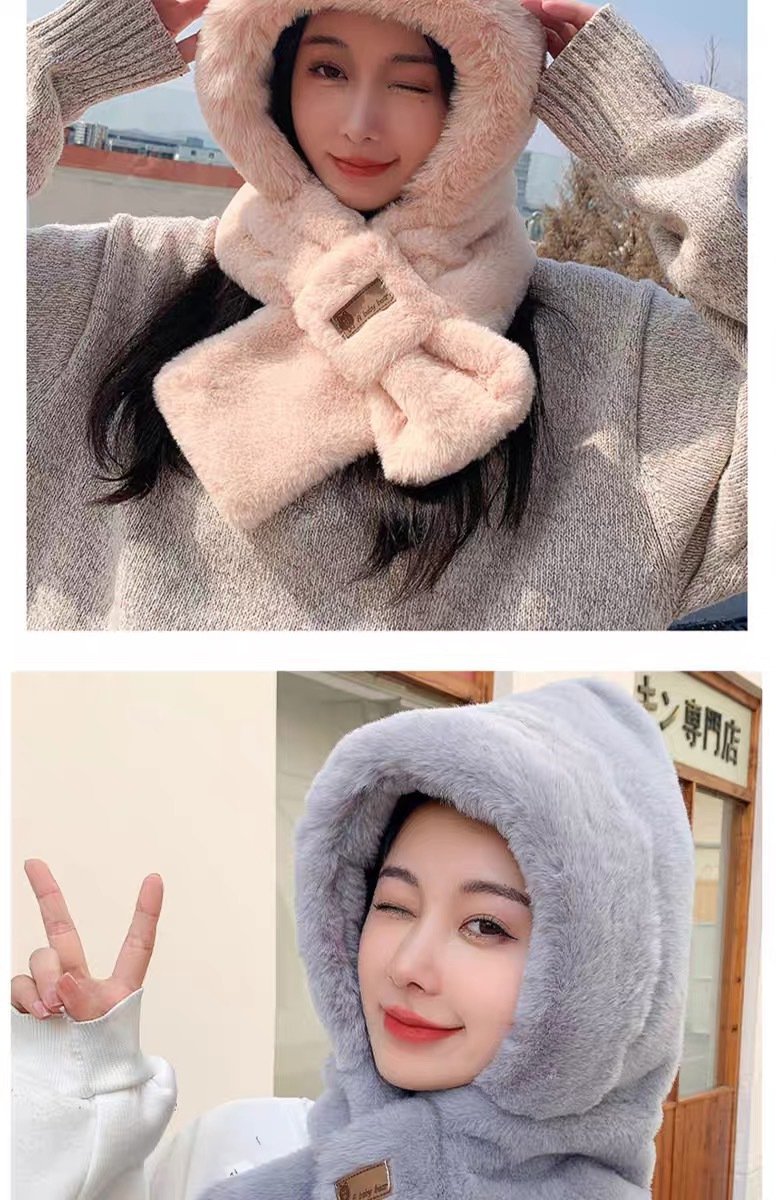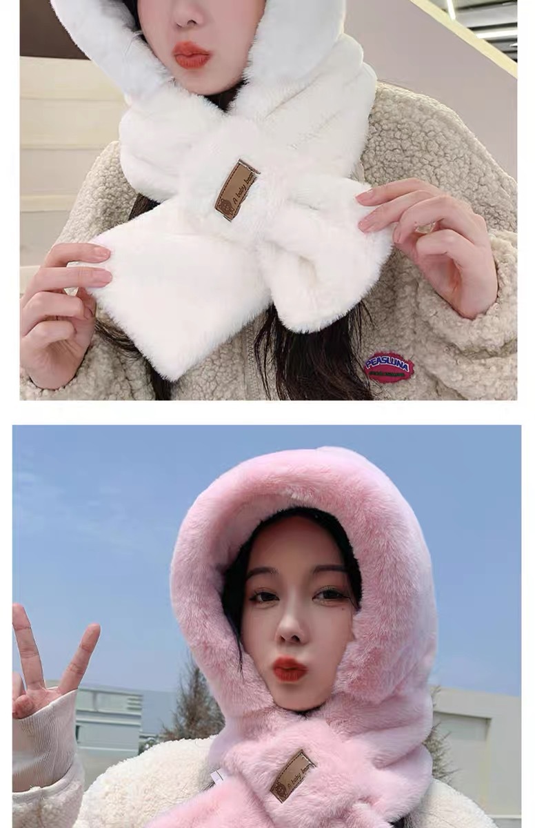 「四色可选!围巾帽子二合一」秋冬季保暖毛绒加厚可爱护耳帽子防寒围脖连帽配饰