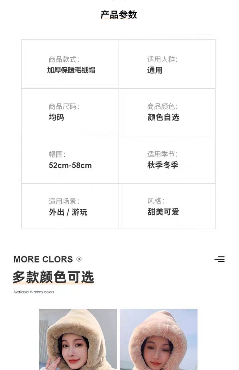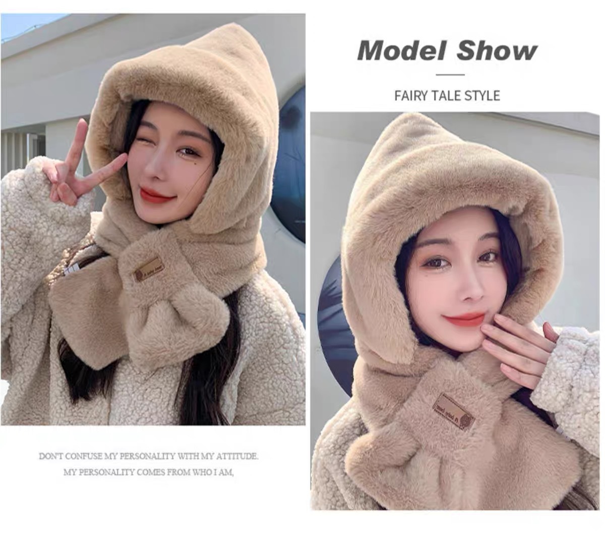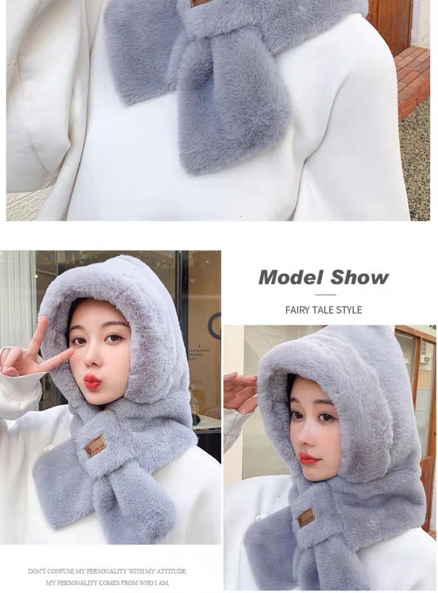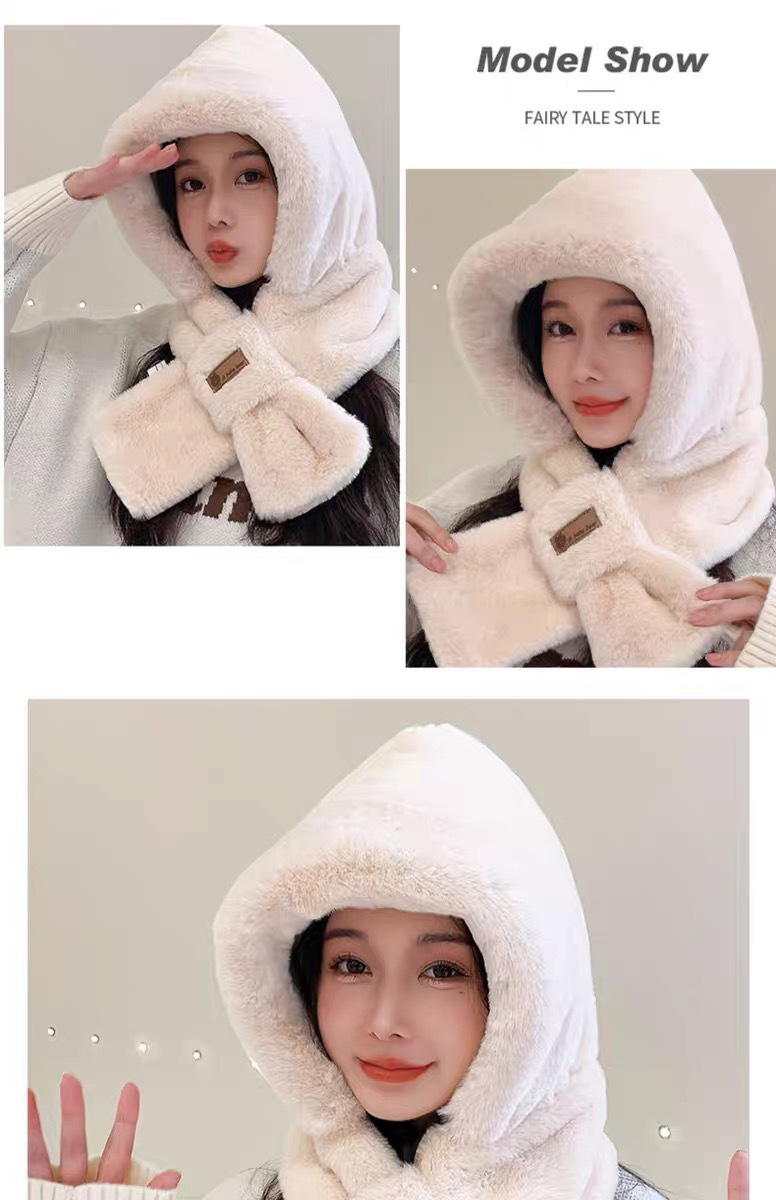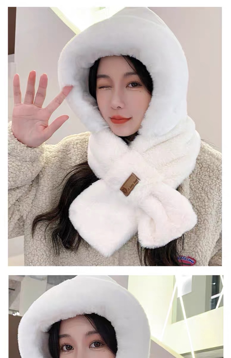 「四色可选!围巾帽子二合一」秋冬季保暖毛绒加厚可爱护耳帽子防寒围脖连帽配饰