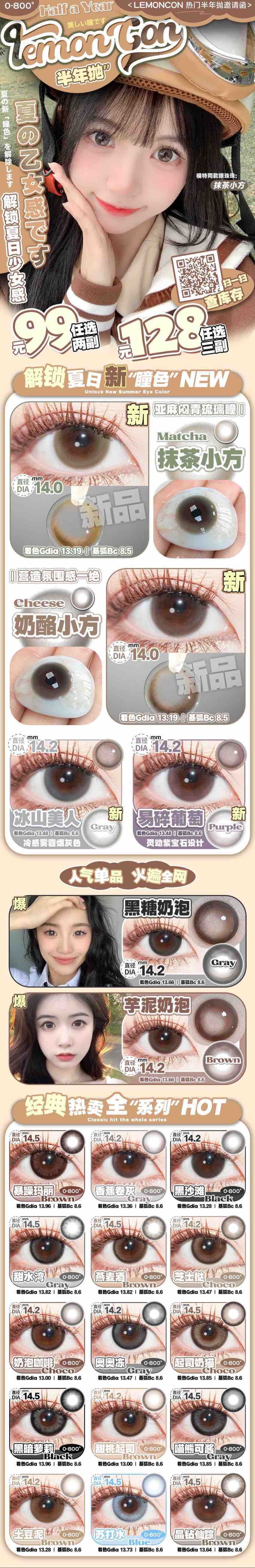 【半年抛活动】LEMONCON活动 99/2副 128/3副 非离子材质 (0-800度)