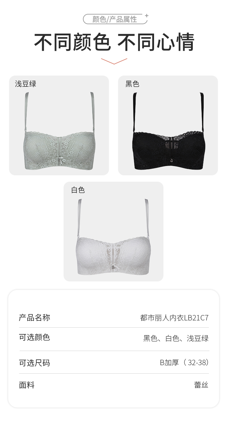 都市丽人B杯常规内衣聚拢升杯加厚蕾丝三排扣树脂胶圈1/2杯常规文胸LB21C7