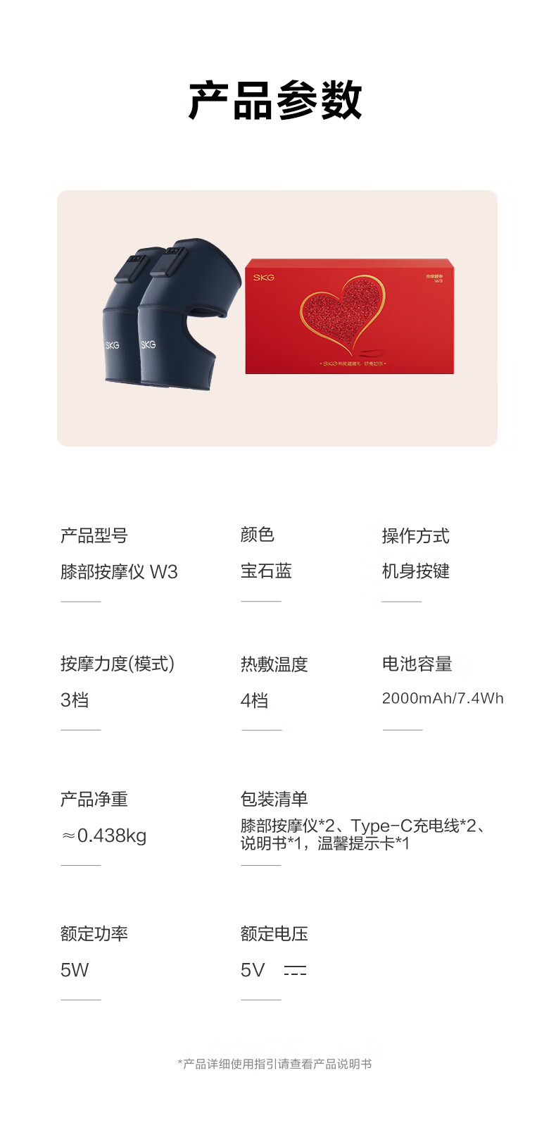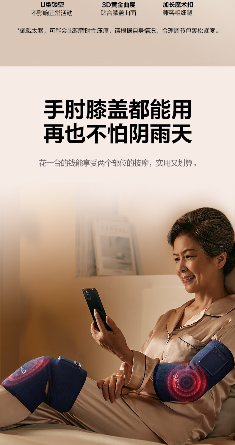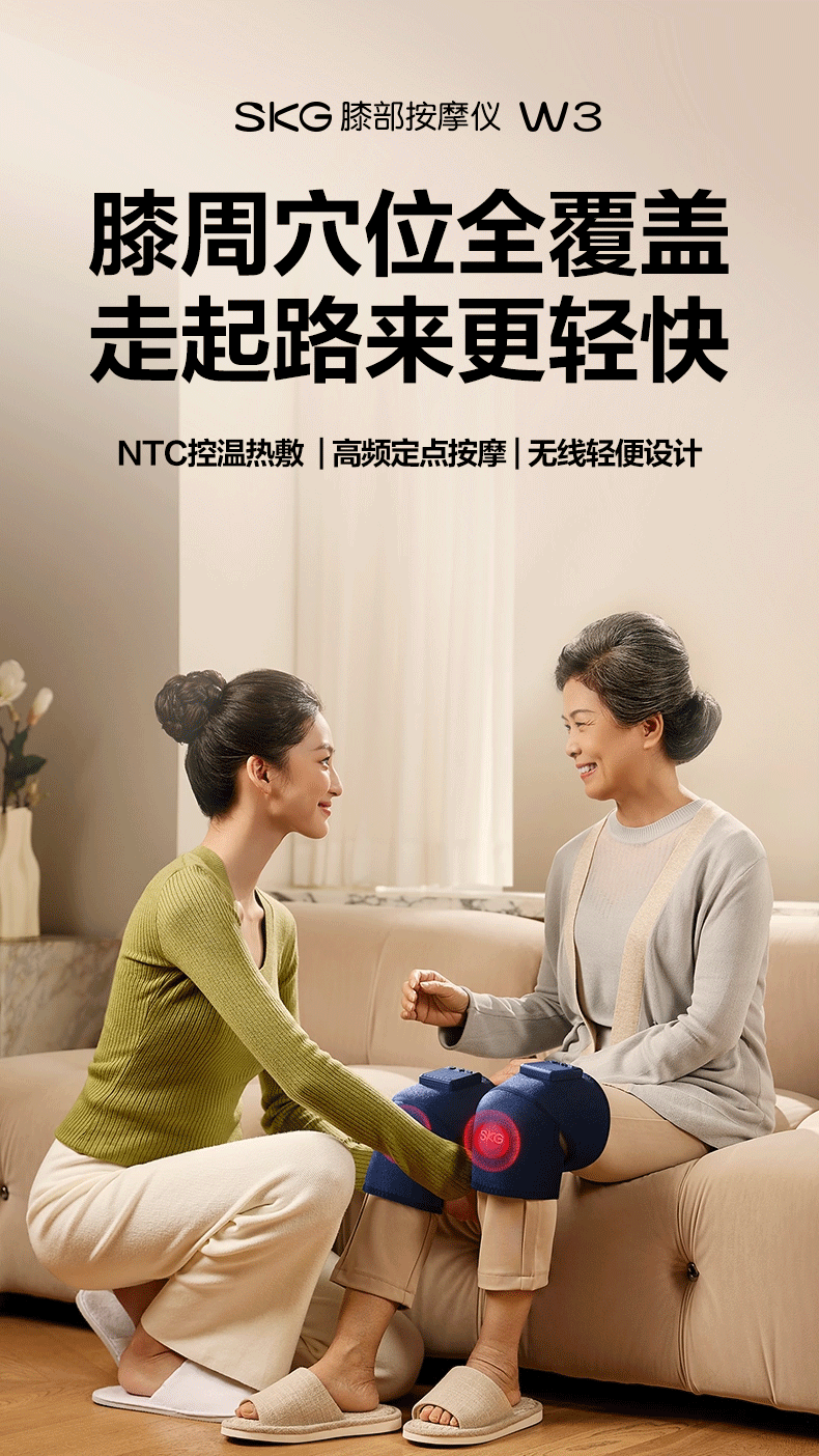 【品牌直发,非质量问题不退换,介意慎拍】SKG膝盖按摩仪膝关节腿部保暖电加热老寒腿(W3系列1代 蓝色 舒享款)