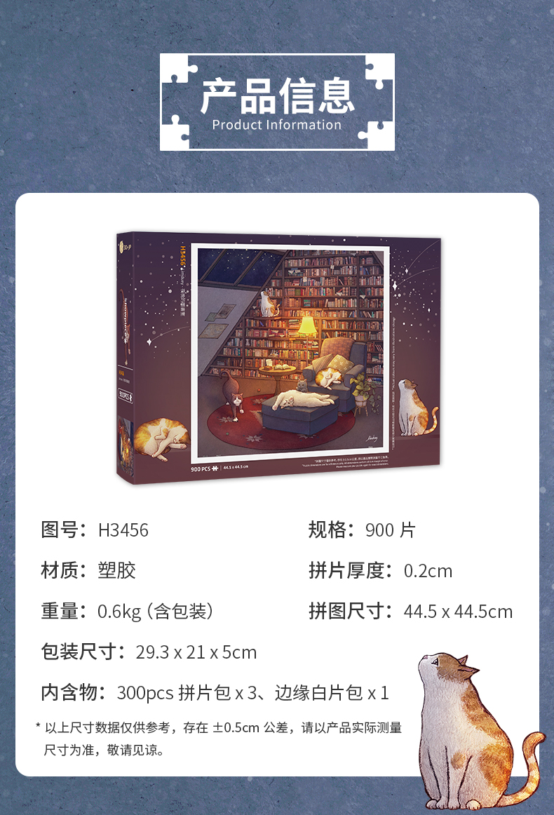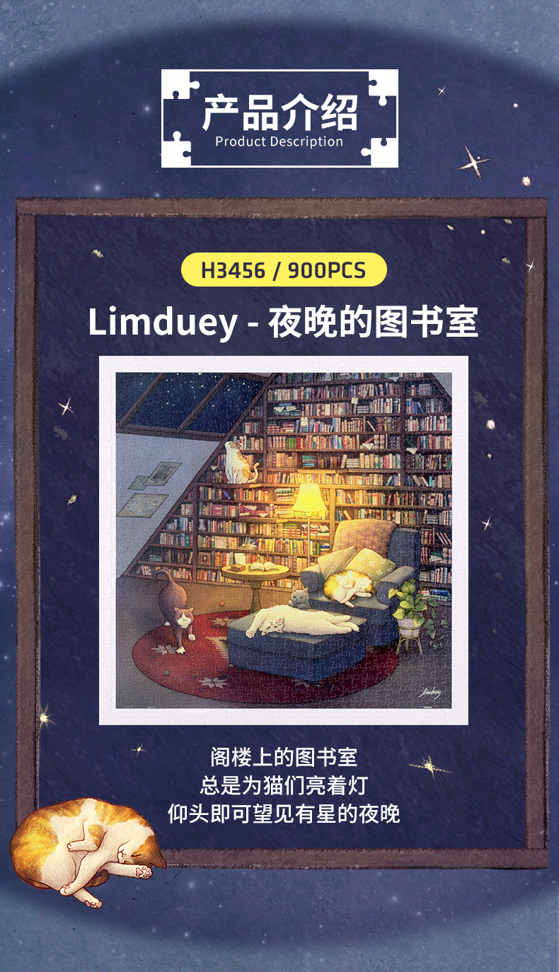 900片 平面塑料拼图 H3456 Limduey-夜晚的图书室