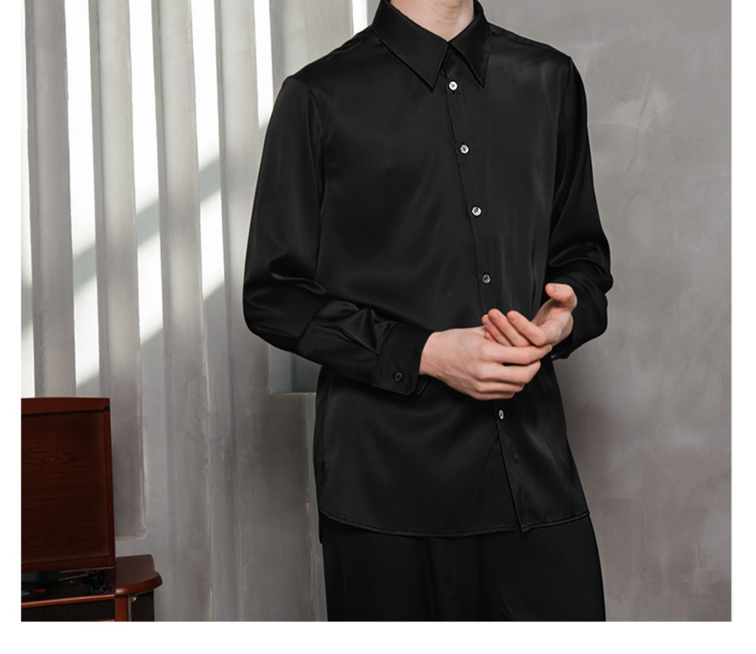 Solo seta25姆米重磅真丝睡衣上装长袖男秋冬高级感外穿丝绸