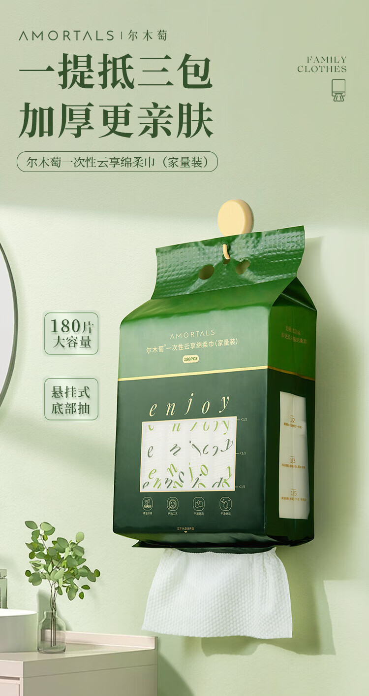 AMORTALS尔木萄 一次性云感绵柔巾加大加厚洗脸巾擦脸洁面巾家庭装180片*2包