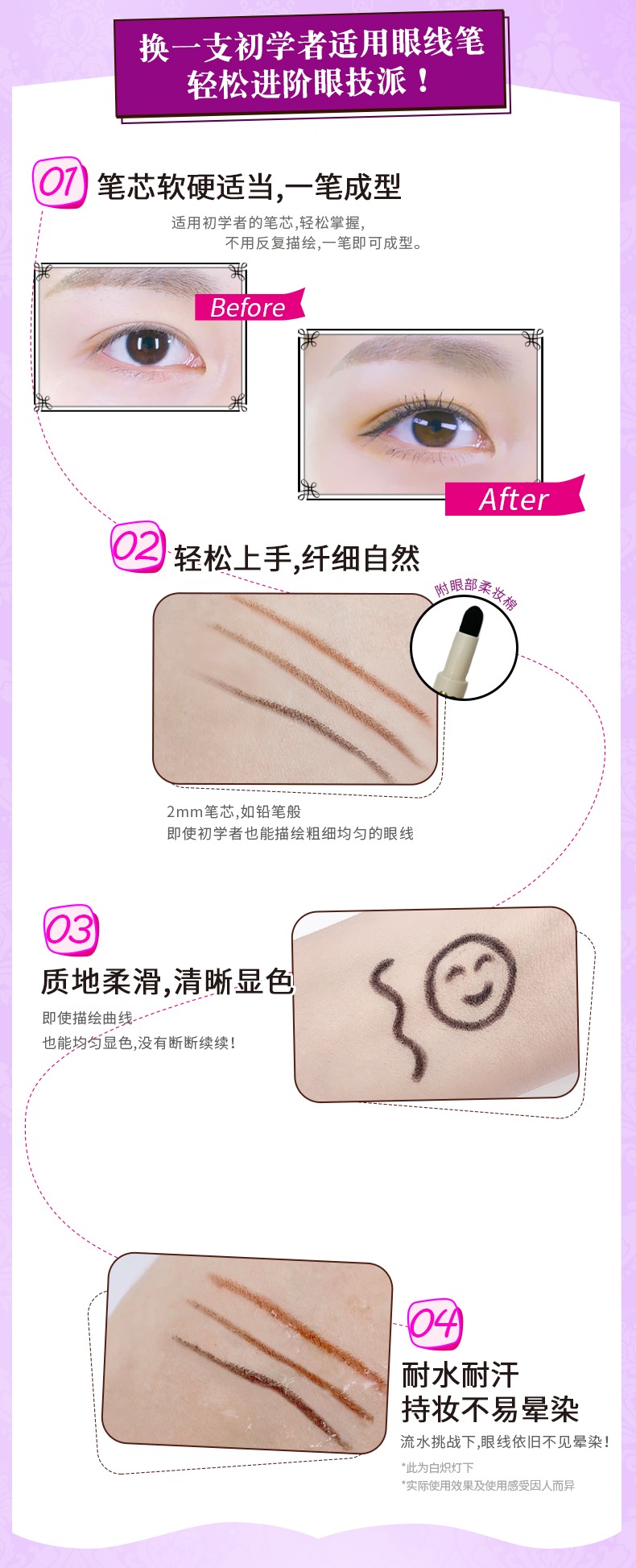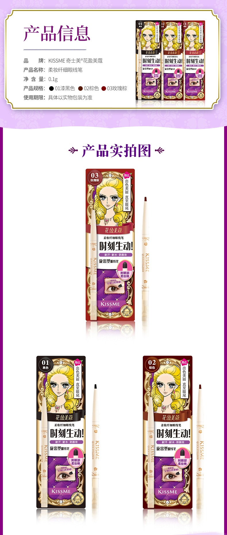 Kissme 奇士美 花盈美蔻柔妆纤细眼线笔(03玫瑰棕)0.1g【保质期:2025年9月23日】