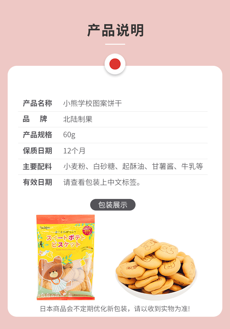 北陆制果 小熊学校 甘薯味饼干 60g/袋