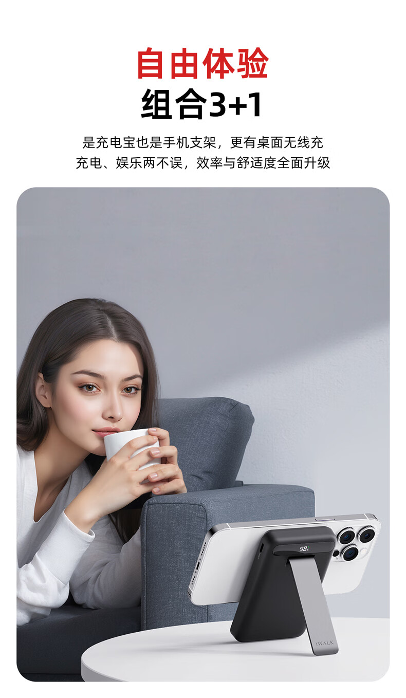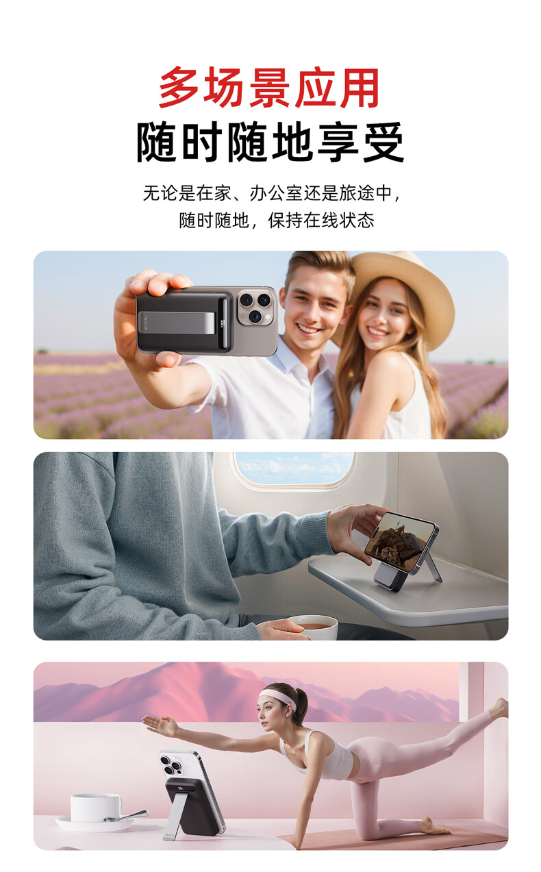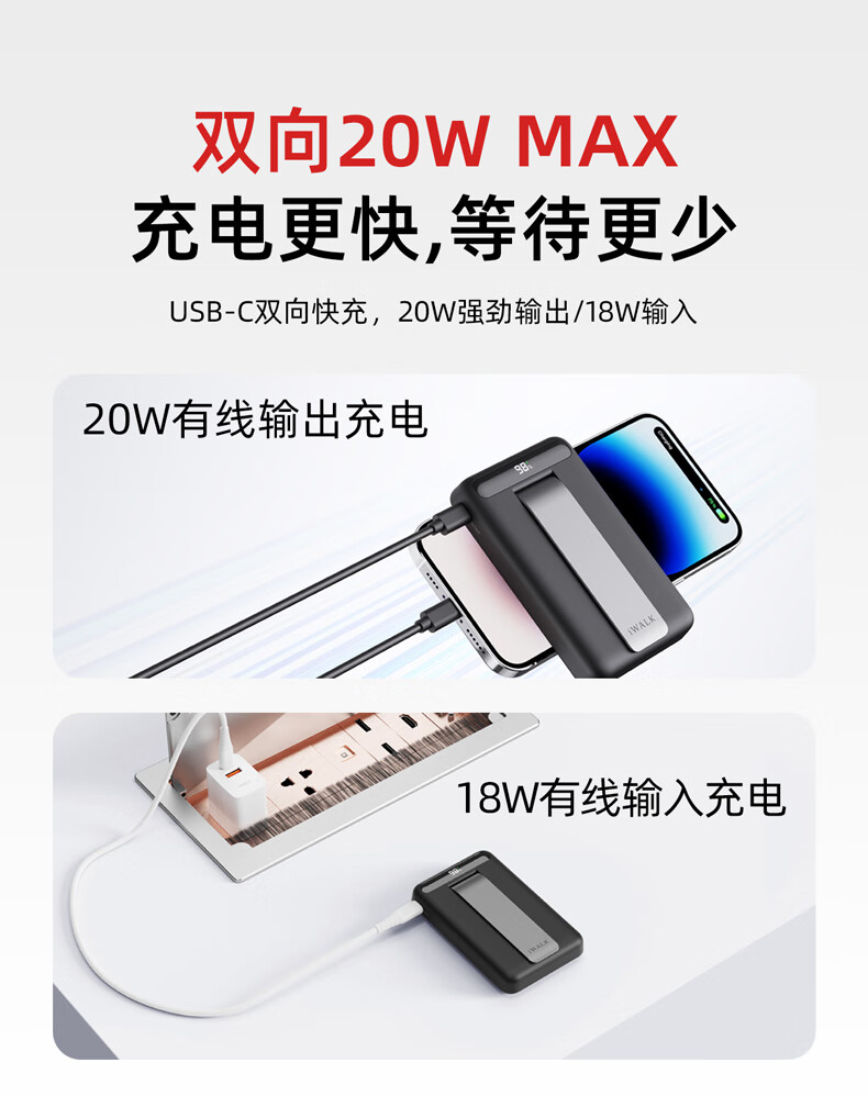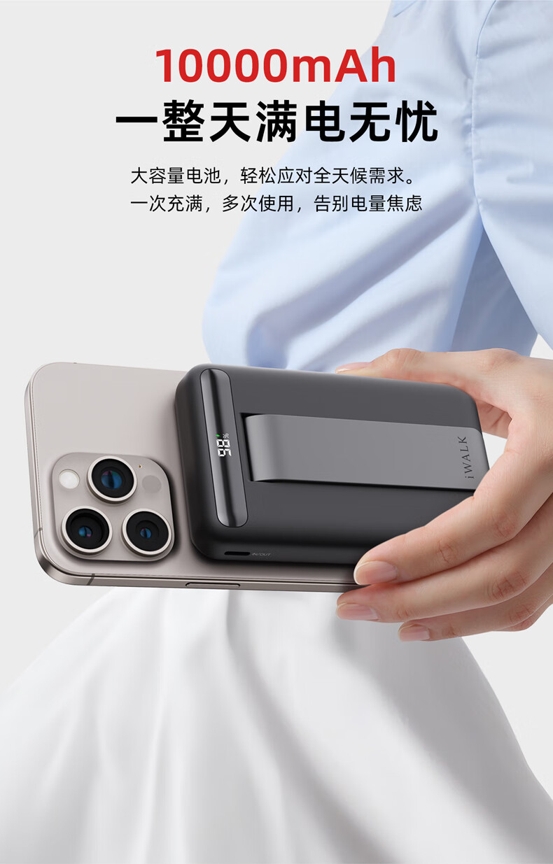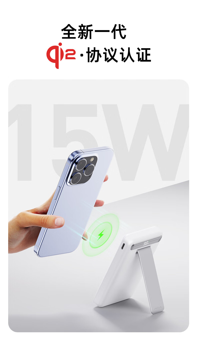 【国家3C认证】爱沃可(iWALK)QI2真无线15W快充MXB014 磁吸支架Magsafe无线充电宝20W大容量10000mAh移动电源适用iphone全系