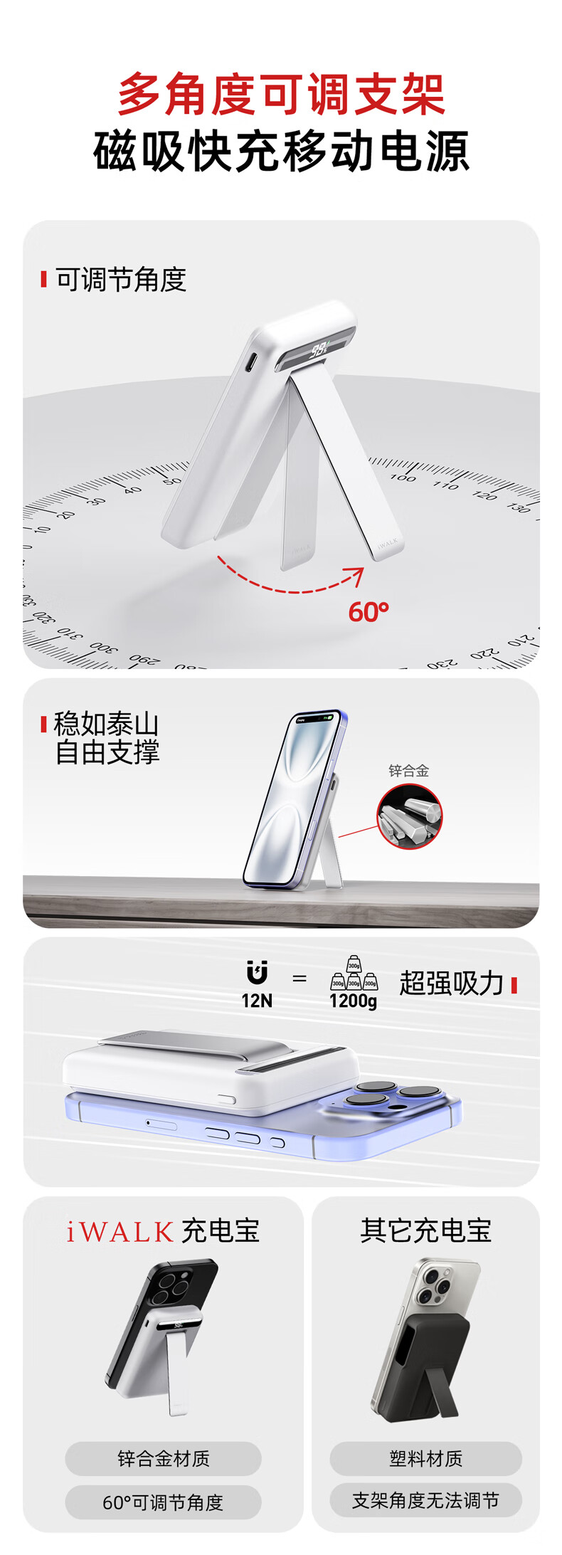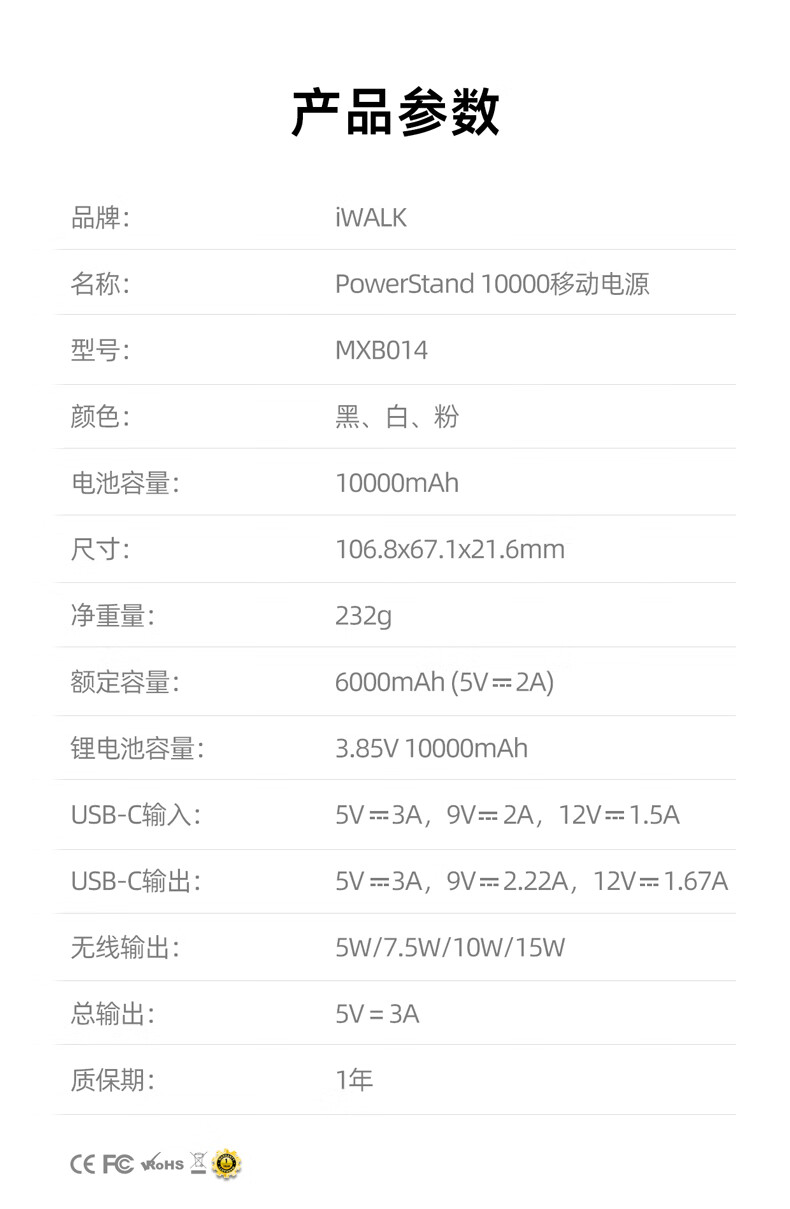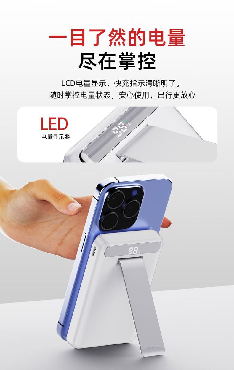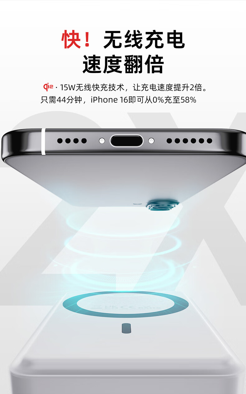 【国家3C认证】爱沃可(iWALK)QI2真无线15W快充MXB014 磁吸支架Magsafe无线充电宝20W大容量10000mAh移动电源适用iphone全系