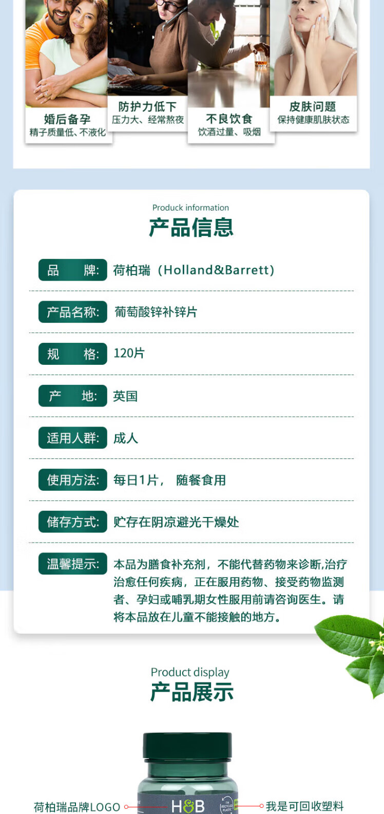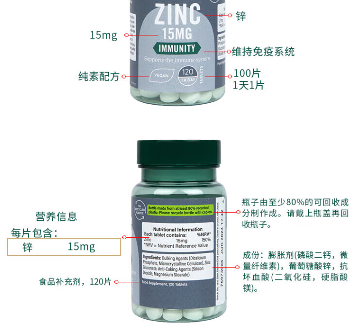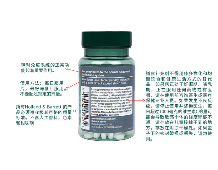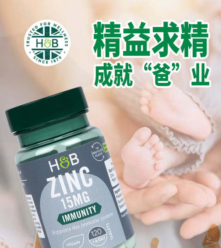 【保税仓】HollandBarrett荷柏瑞 男性备孕维生素锌片15mg120片