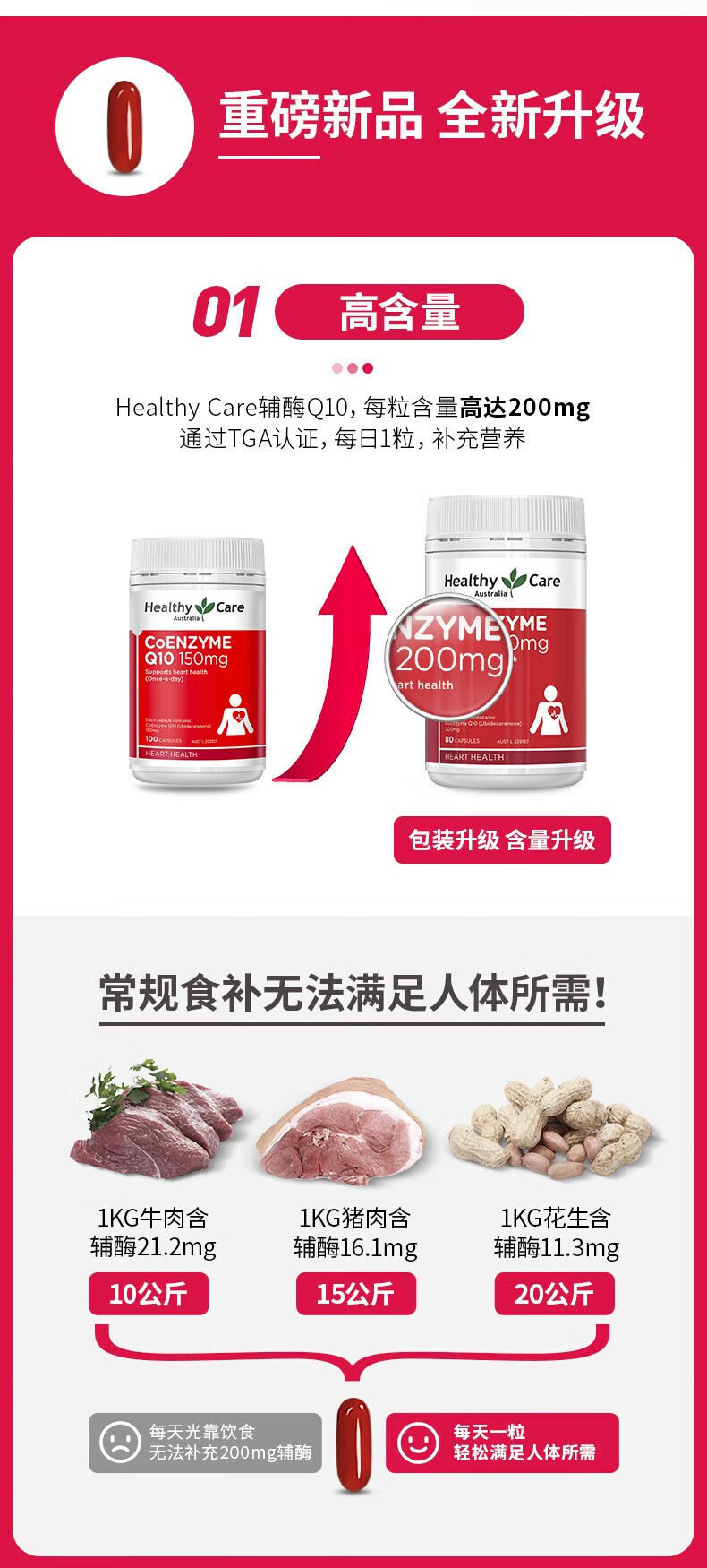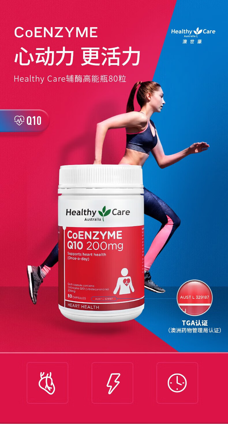 【保税仓】Healthy Care辅酶Q10胶囊 200mg 80粒 效期26.9月